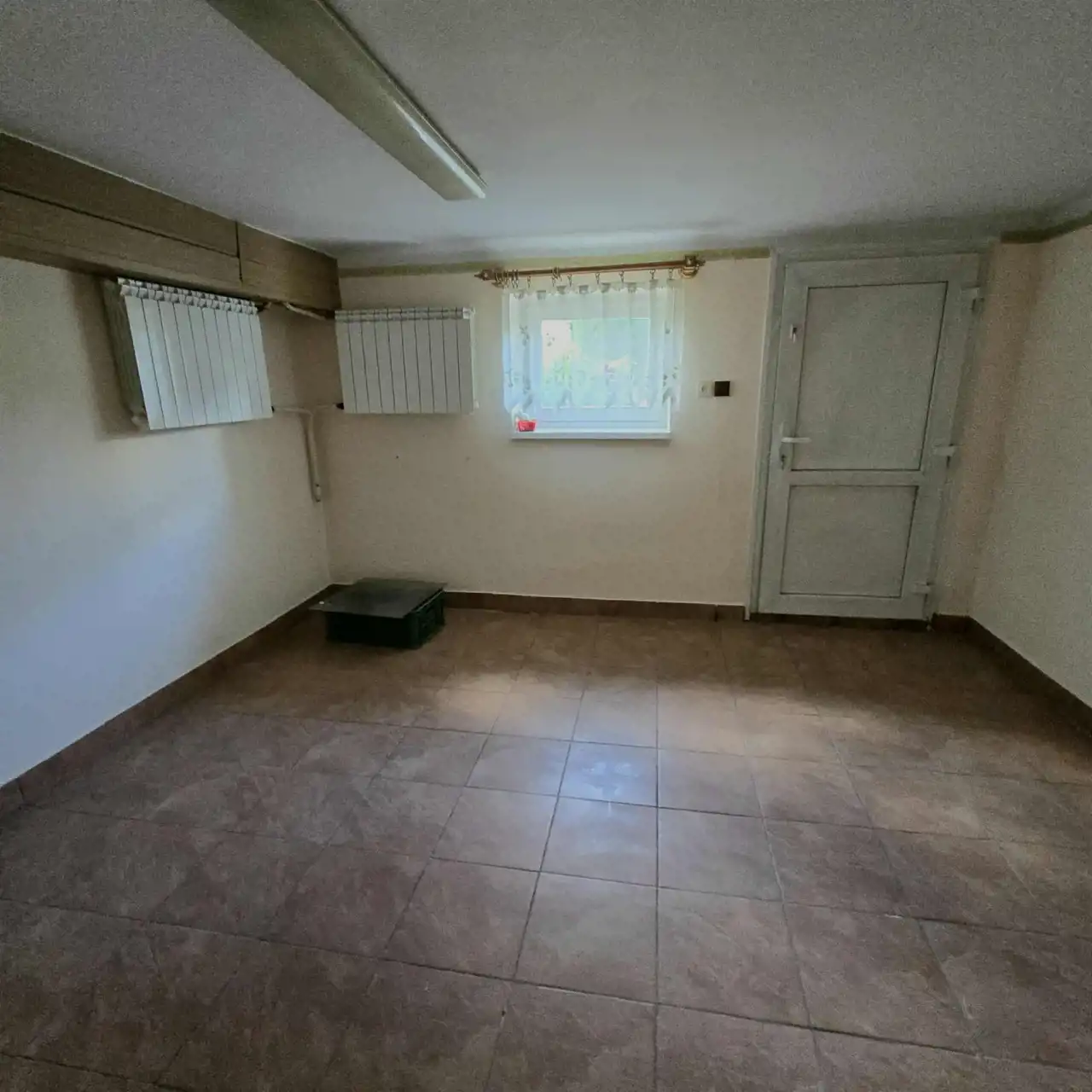 Pod całym budynkiem znajduje się piwnica, a tam mieszczą się pomieszczenia gospodarcze, takie jak kotłownia, pralnia garaż, który pomieści 2 auta oraz pomieszczenia, które wcześniej były wykorzystywane na pracownię i biuro z zapleczem socjalnym. W całej piwnicy zamontowano okna PCV antywłamaniowe.