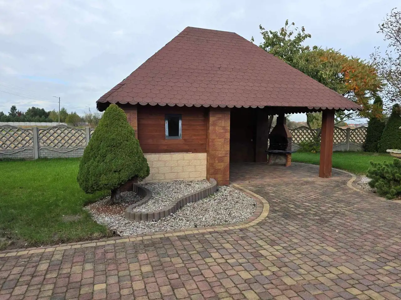 Na działce znajduje się również murowana altana z miejscem do biesiadowania, grillowania. Przy altanie oczko wodne. Podwórko wyłożone kostką brukową, całość działki pod zabudowę zagospodarowana i ogrodzona. Dojazd do posesji drogą utwardzoną.