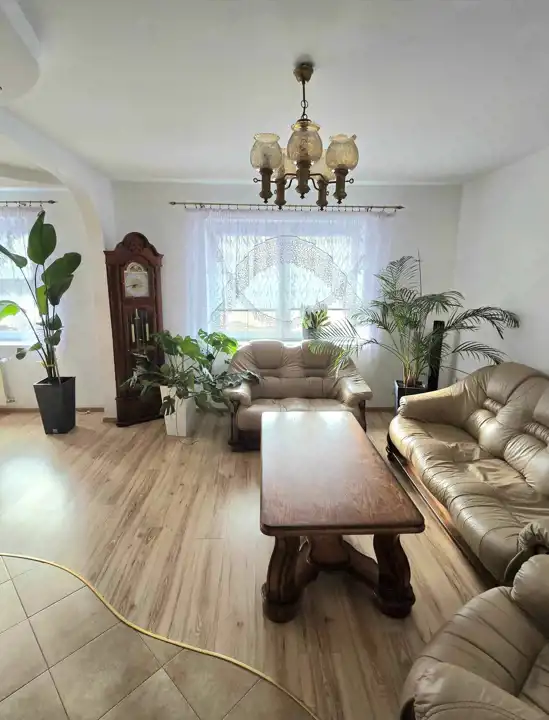 Dom o powierzchni użytkowej 130 m2 dwukondygnacyjny, posiada kuchnię, duży przestrony salon z kominkiem, 3 pokoje, 2 łazienki, oraz kotłownię. Budynek mieszkalny został ocieplony i częściowo wyremontowany. Dom jest gotowy do zamieszkania. W domu pozostają meble oraz wyposażenie. Dom jest przestronny i funkcjonalny.
