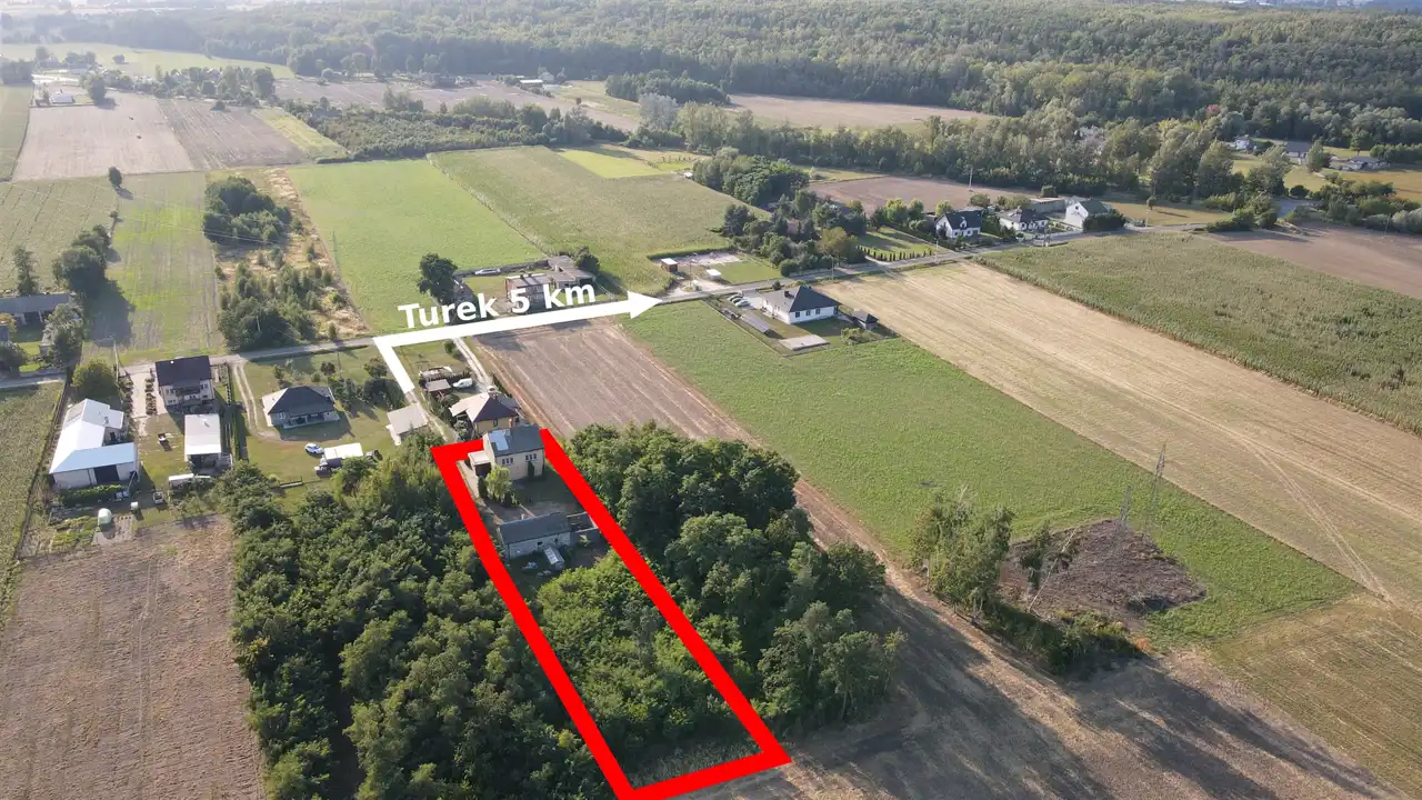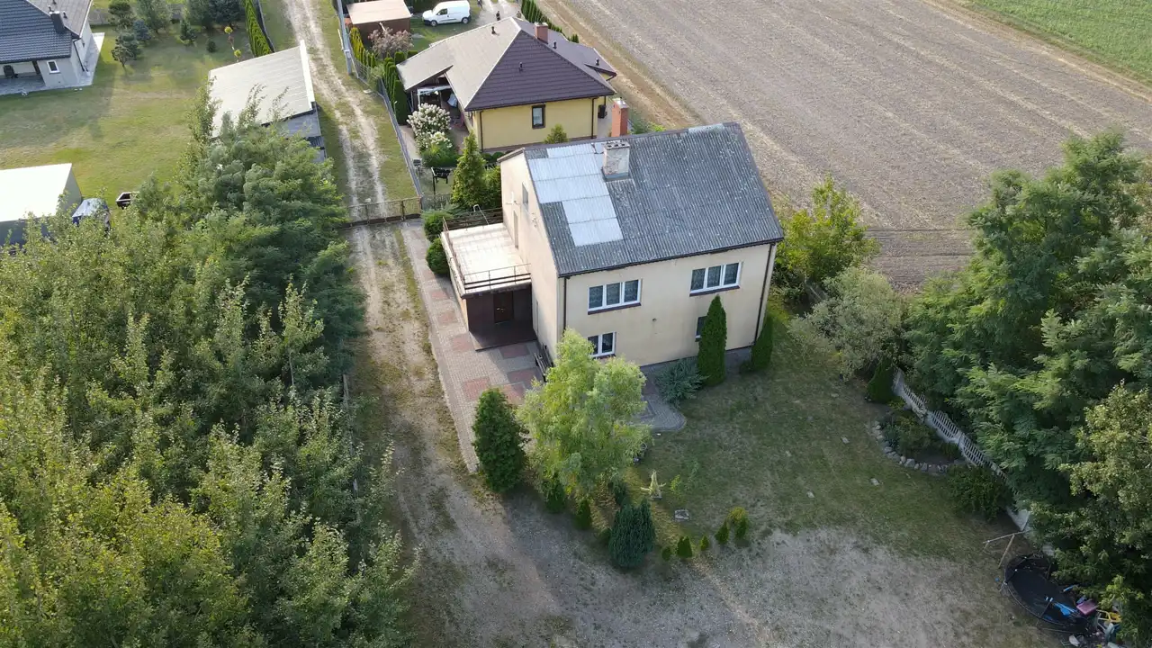 Dom posadowiony na dużej działce o powierzchni 3250 m2. Działka częściowo zalesiona. Powierzchnia użytkowa domu to 158,86 m2. Na działce znajduje się budynek gospodarczy o powierzchni użytkowej 58,58 m2 w którym mieszczą się pomieszczenia techniczne do dowolnego zagospodarowania.