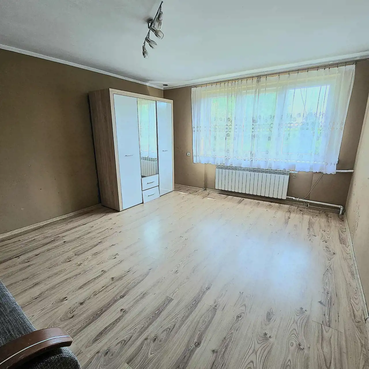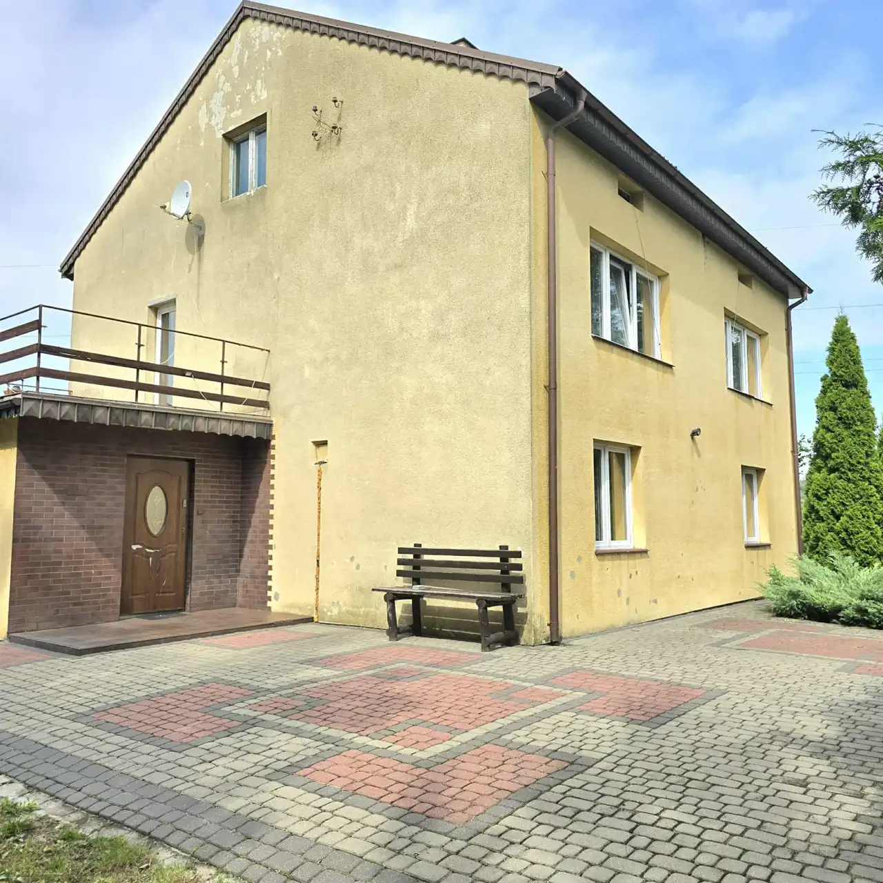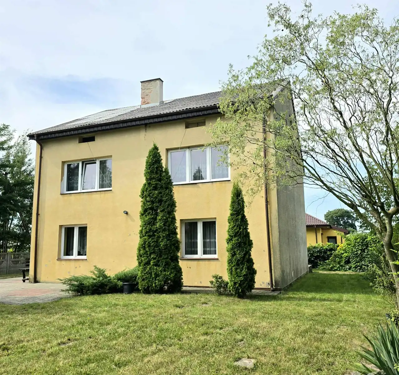 Duży piętrowy dom dla rodziny wybudowany w końcówce lat 80-tych, według ówczesnych trendów w budownictwie. Dom aktualnie wymaga remontu.