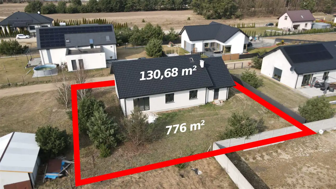 Dom wybudowany na działce o powierzchni 776 m2. Działka w kształcie prostokąta, pozwala dowolnie zaprojektować przestrzeń wokół domu- ogród i miejsce do wypoczynku i rekreacji.