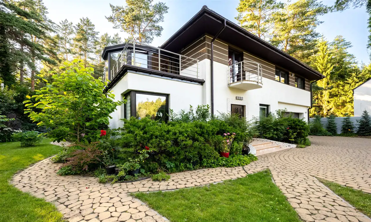W bryle budynku duży dwustanowiskowy garaż (40m2) otwierany bramą na pilot. Cały podjazd jak i pierścień dookoła domu wyłożony kostką.