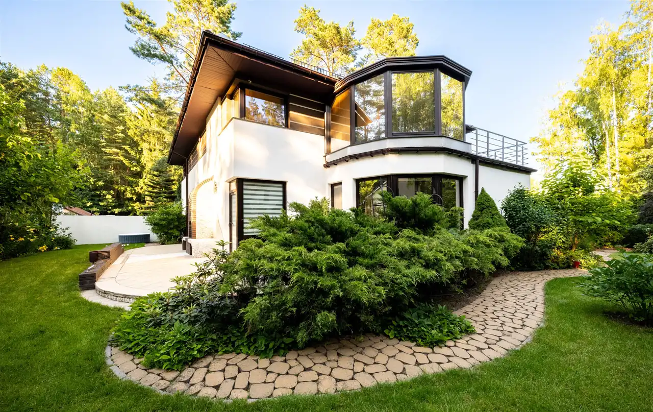 Działka pięknie urządzona i zagospodarowana w liczne drzewka, krzewy i nasadzenia.