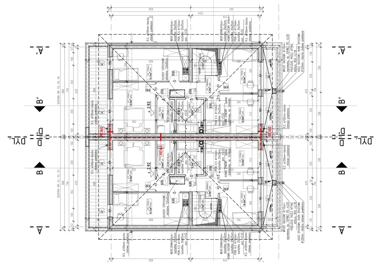 - PIĘTRO (70,54m2) - cztery oddzielne sypialnie, łazienka z wc, pralnia z wyjściem na poddasze.
