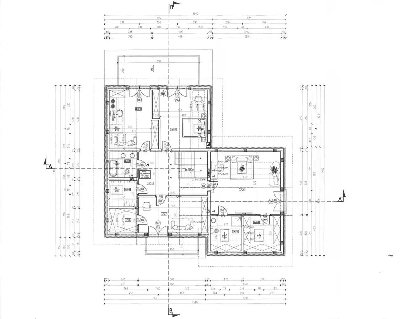 * na tym etapie możliwa zmiana rozkładu poszczególnych pomieszczeń!(ścian działowych)