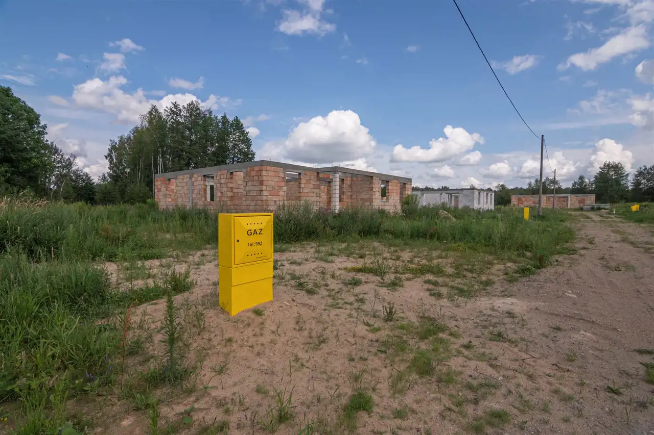 - Media Woda: tak; Kanalizacja: zaprojektowana; Prąd: na działce; Gaz: zaprojektowany