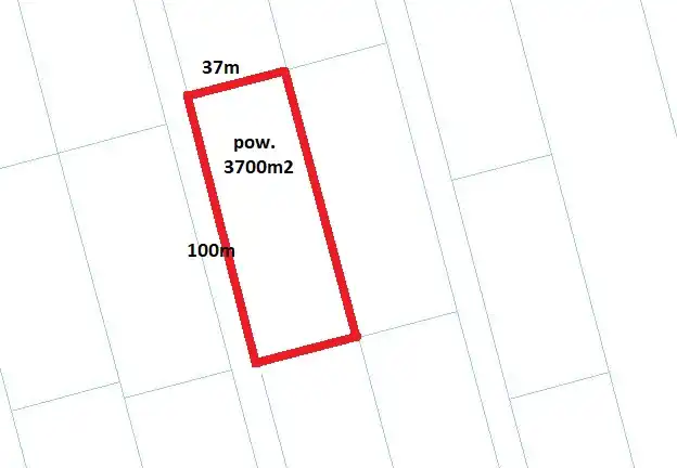 Działka ma kształt prostokąta o wymiarach 100m na 37m.
