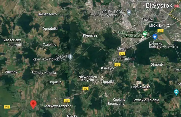 Działka znajduje się 11 km od granic Białegostoku i 16 km od centrum miasta.