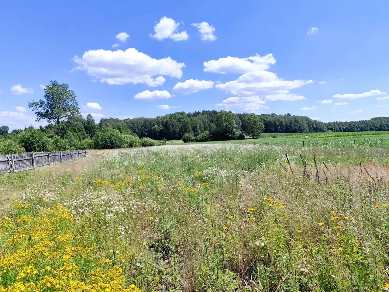 Atrakcyjna i zielona okolica w kameralnym sąsiedztwie domów wolnostojących. Bardzo ładna panorama na pola uprawne i otaczające i otaczające lasy.