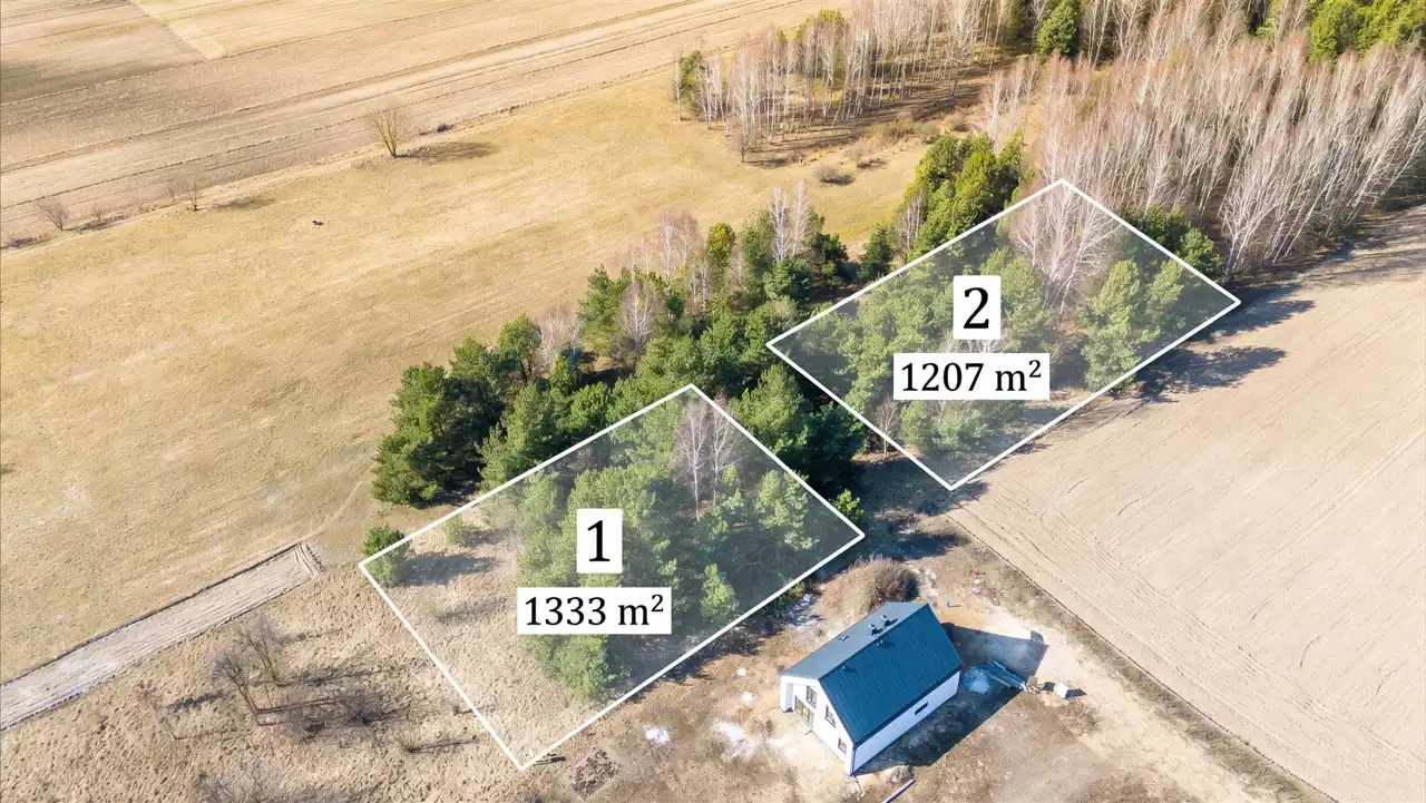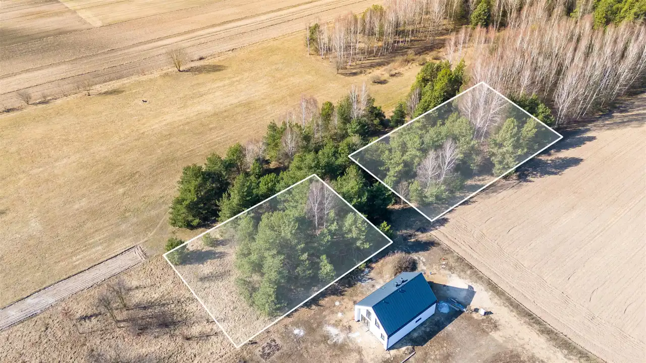 Dwie działki położone w bardzo atrakcyjnej i spokojnej miejscowości Pomigacze, w gminie Turośń Kościelna, z szybkim dojazdem do Białegostoku (ok. 15 km).