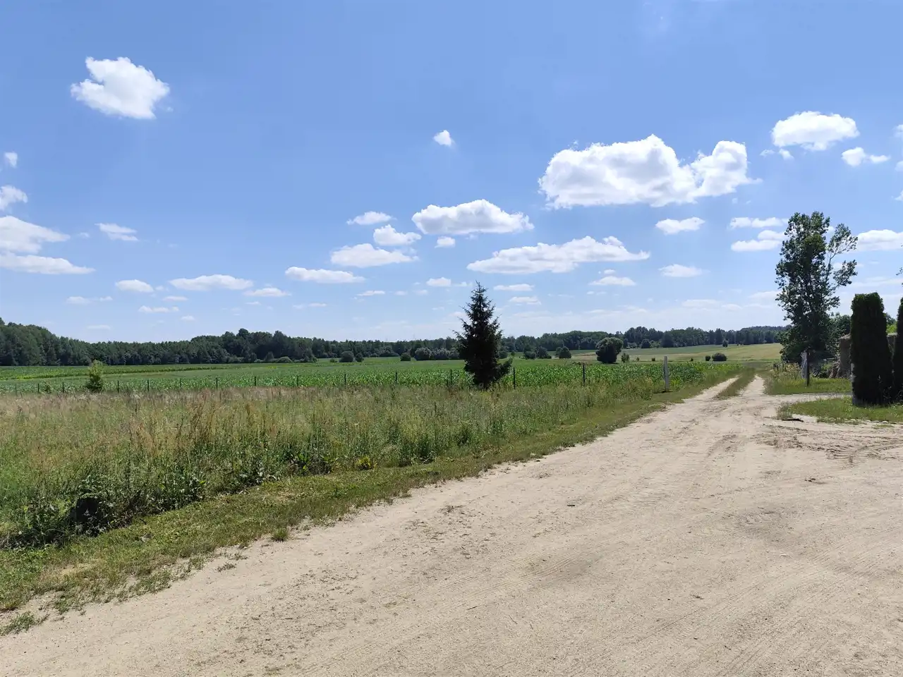 Media: prąd w drodze, sieć wodociągowa (ok 60m) . Teren z korzystnymi warunkami dla poboru wody z własnej studni głębinowej. Dojazd dobrymi drogami asfaltowymi, ostatnie 200m drogi szutrowej.
