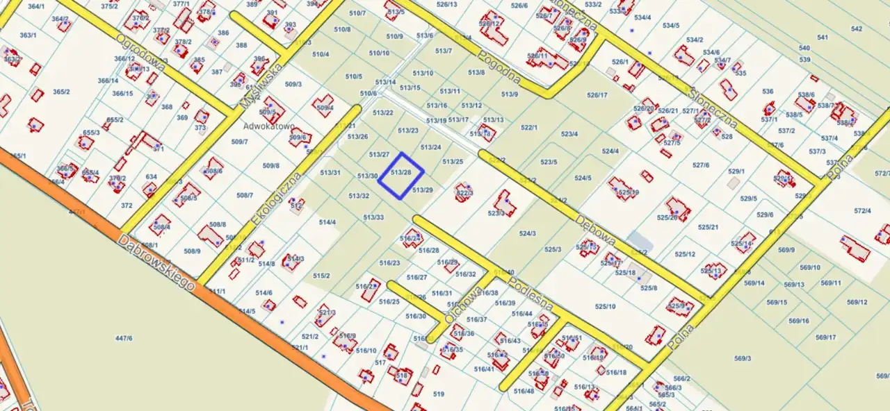 - Otoczenie działki zabudowane