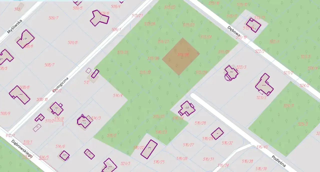 - Działka Niezagospodarowana, zadrzewiona, prostokąt
