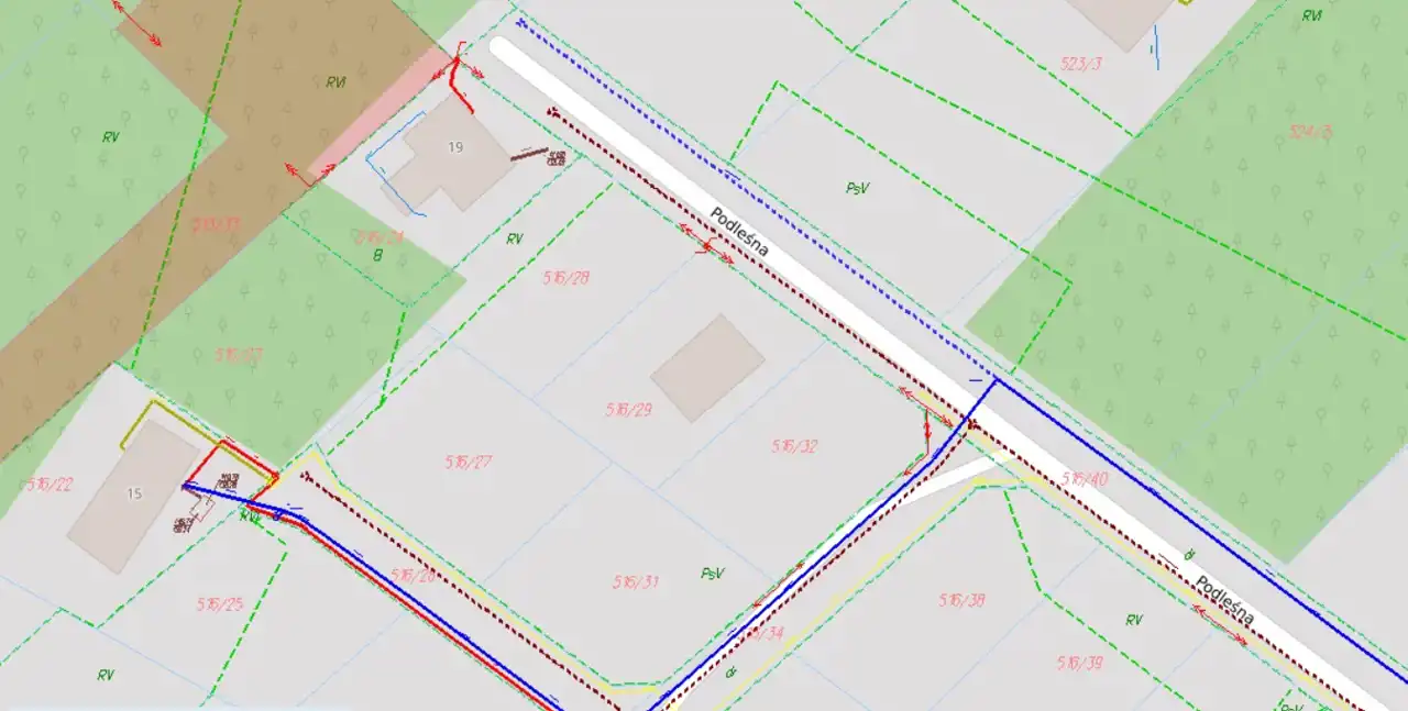 Dostęp do działki z ulicy gminnej ul. Podleśnej, a następnie przez drogę wewnętrzną prywatną.