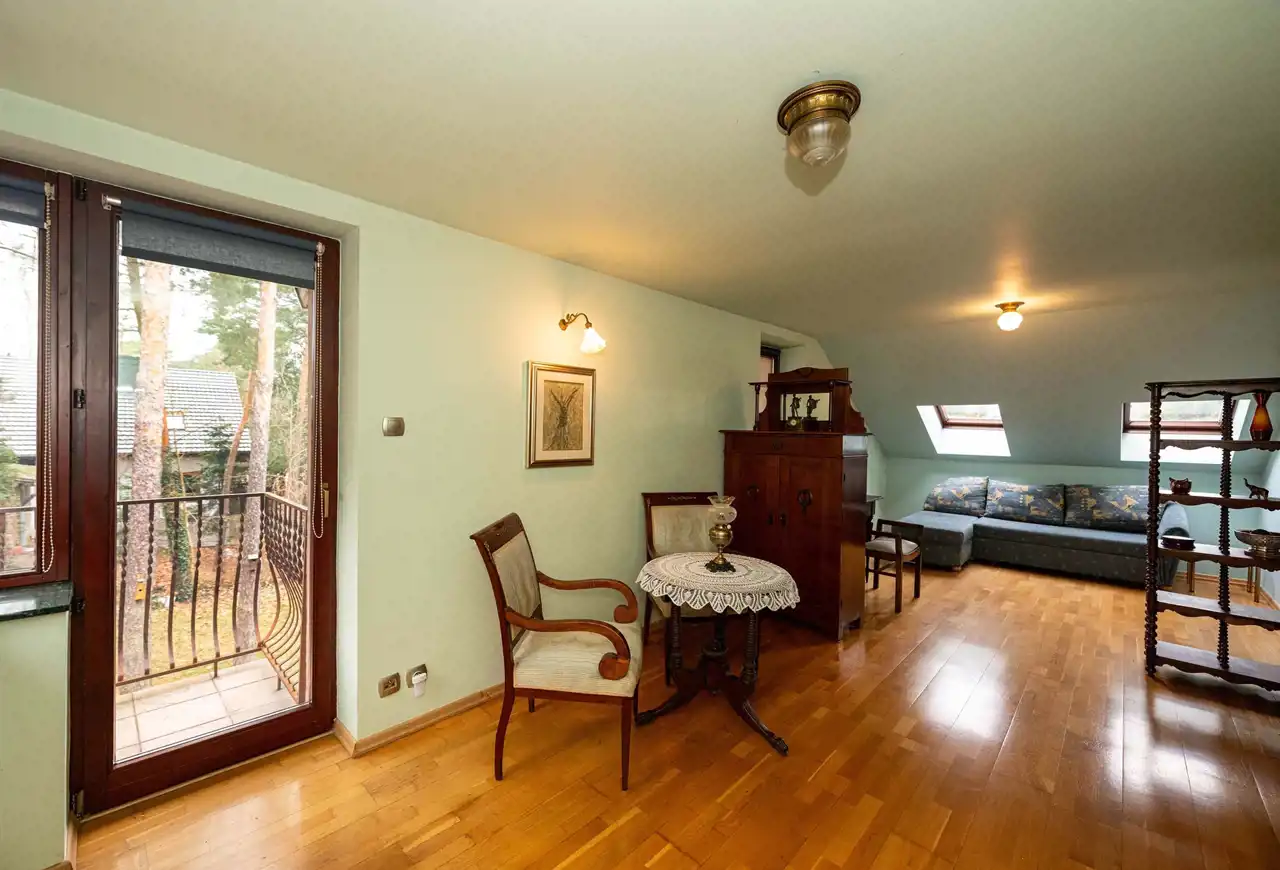 Istnieje możliwość dokupienia sąsiadującej działki o powierzchni 1205 m², zabudowanej drewnianym domkiem letniskowym 36 m², wykończonym w stylu wiejskiej chaty. Działka stanowi odrębną nieruchomość i może zostać nabyta oddzielnym aktem notarialnym.