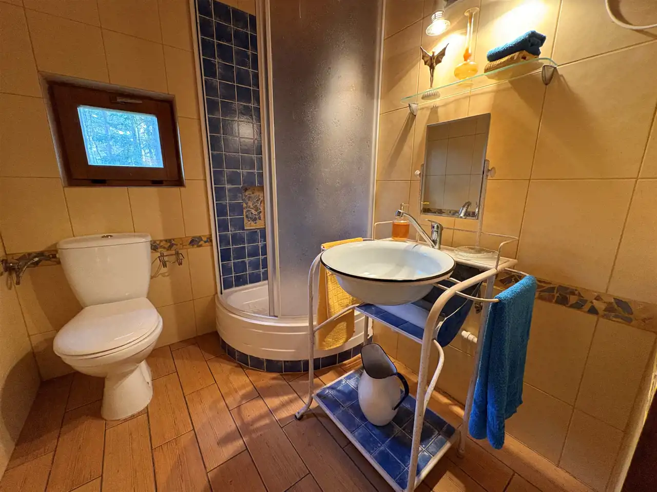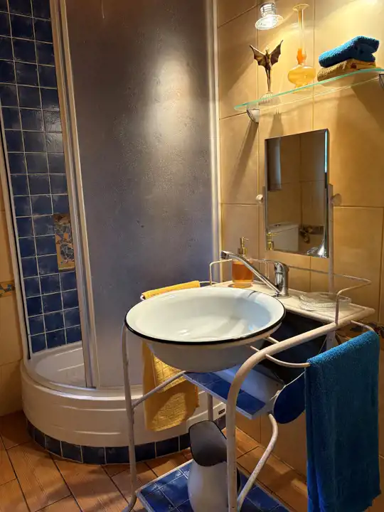 łazienkę wyposażoną w prysznic, toaletę i bidet.