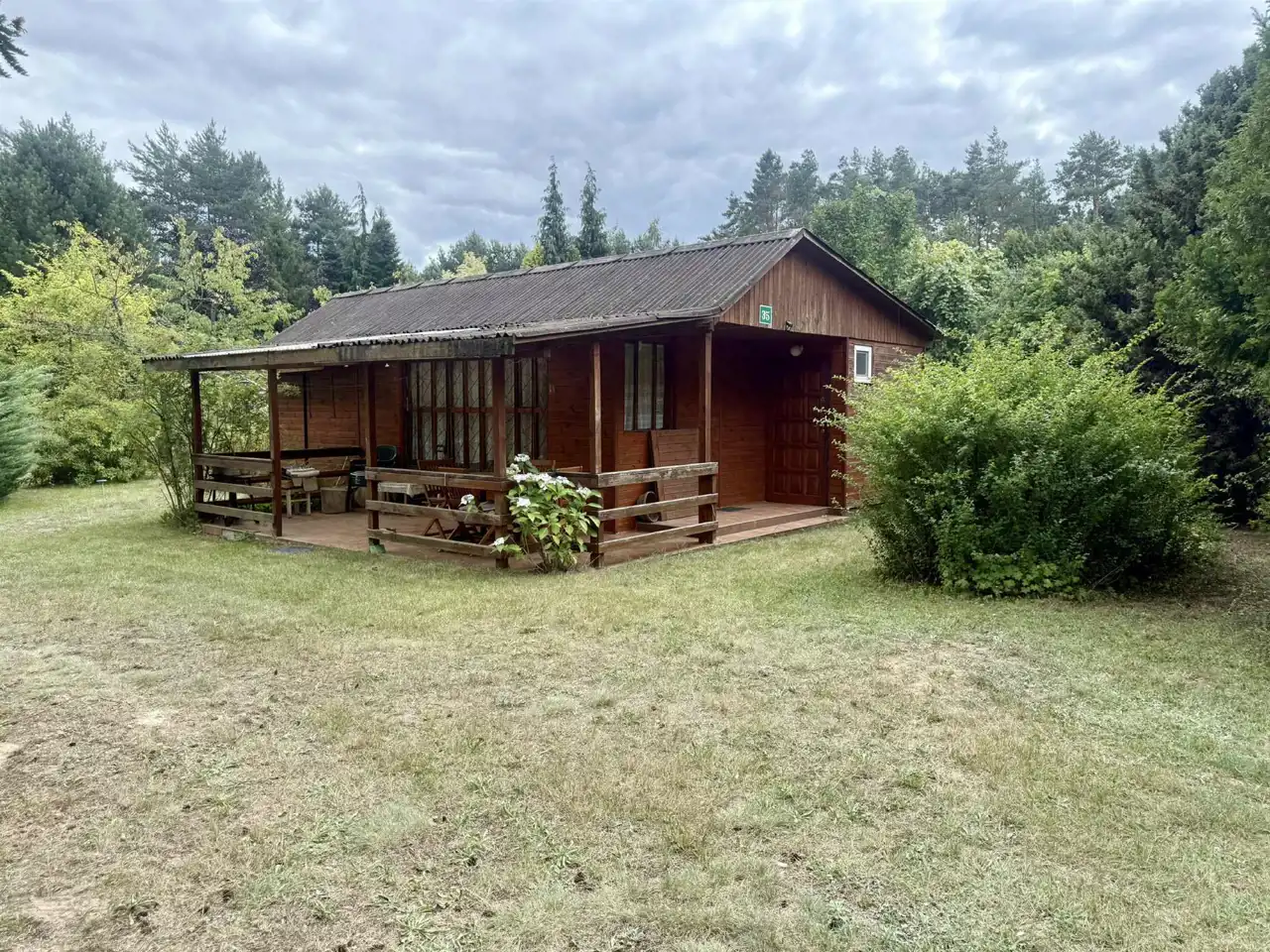 Na działce znajduje się też drewniany domek letniskowy o powierzchni 30 m2. Składający się z dwóch pokoi, kuchni i łazienki z wc i brodzikiem.