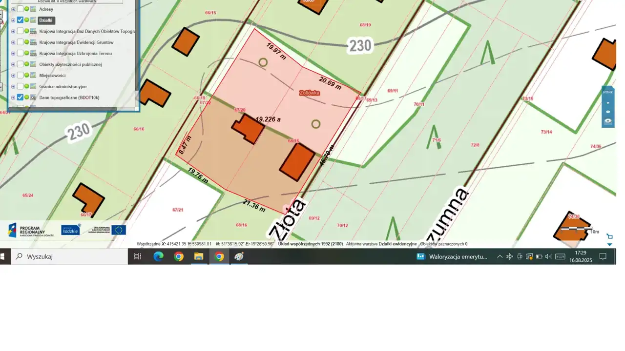 - Działka częściowo zagospodarowana, płaska, prostokąt
