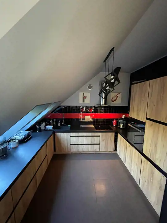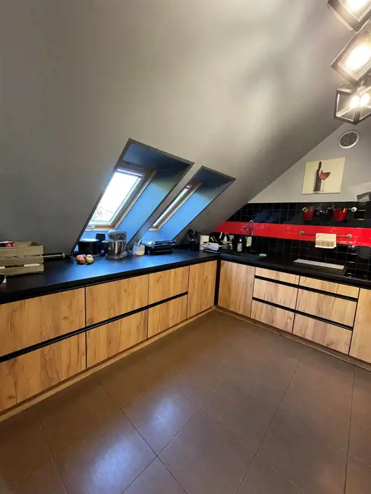 Wnętrza w mieszkaniu są wysokie i jasne. Dach nad mieszkaniem został całkowicie wymieniony i ocieplony. Mieszkanie jest umeblowane i w pełni wyposażone (stała zabudowa meblowa, zmywarka, piekarnik, płyta elektryczna) - wszystko gotowe do zamieszkania bez dodatkowych nakładów. Idealne dla osób szukających przestrzeni, światła i ponadczasowego stylu.