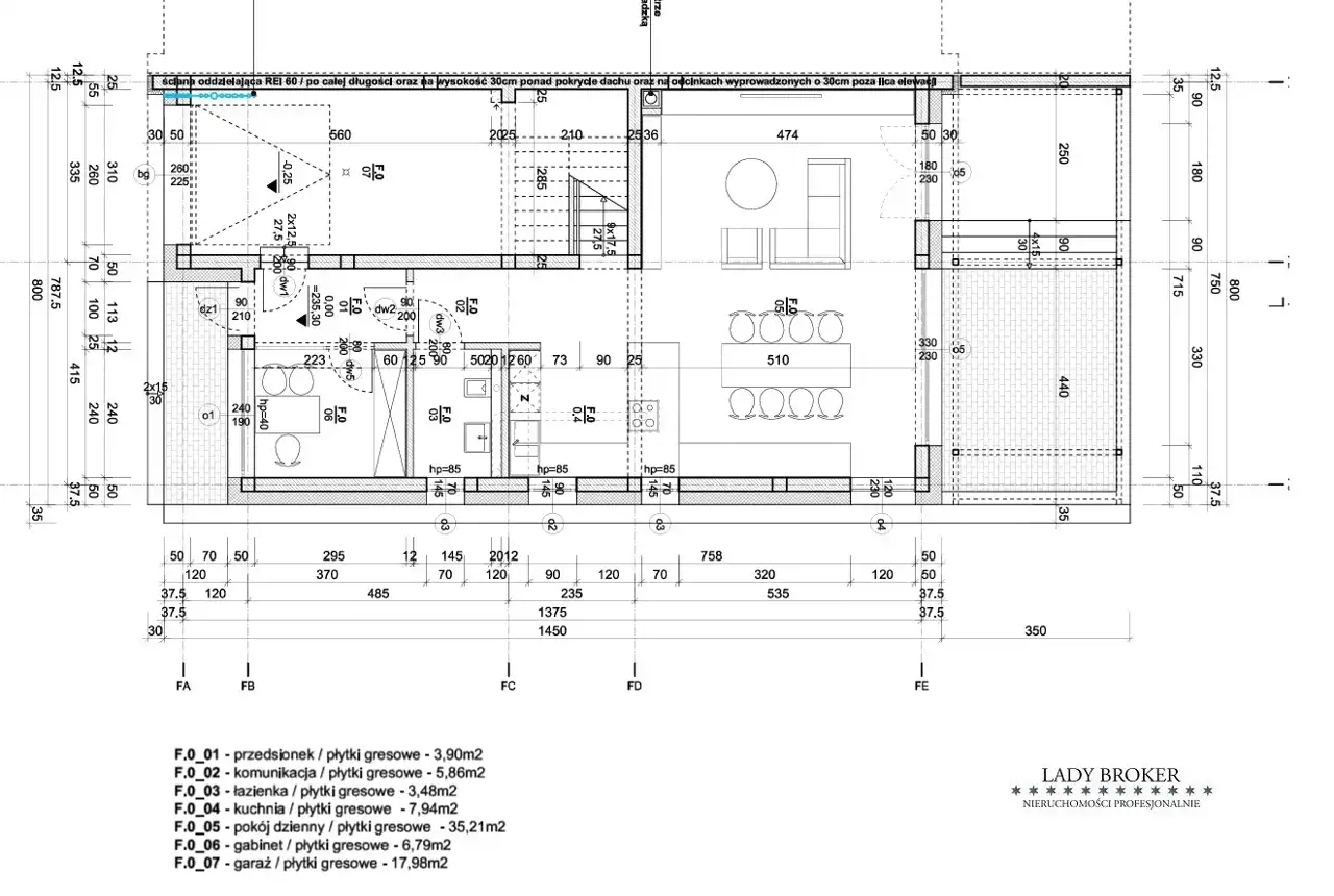 - salon z jadalnią 35,21 m2 i wyjściem na taras