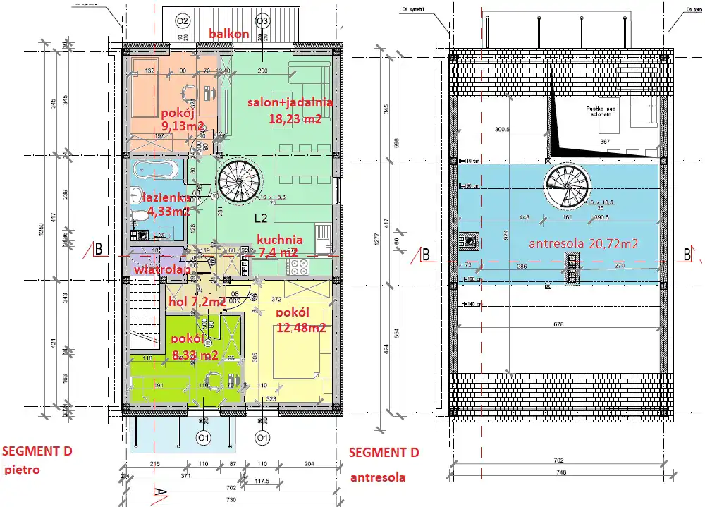 Piętro ma powierzchnię 73,83 m2. Mieszkanie posiada wiatrołap z klatką schodową, trzy niezależne pokoje, łazienkę oraz połączone: kuchnię, salon i jadalnię, które stanowią idealną przestrzeń do życia całej rodziny. Dodatkowym atutem jest antresola, którą można zaaranżować wedle własnych potrzeb.