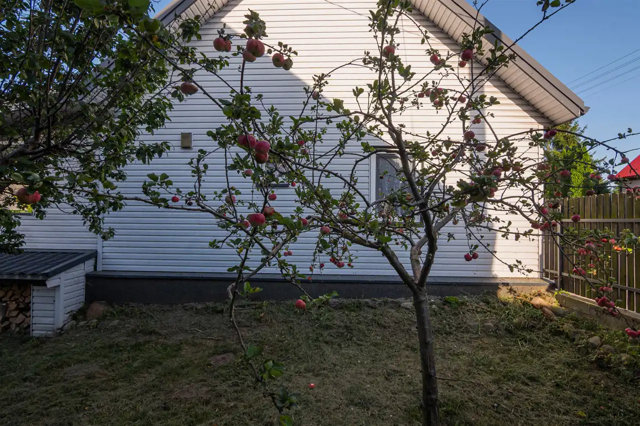 * Liczne drzewa owocowe i krzewy – gotowy sad czekający na gospodarza