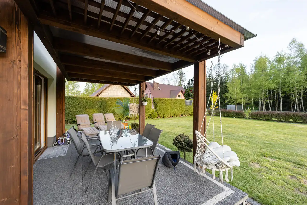 Wyjątkowym miejscem na posesji jest taras (eks. na południe) z widokiem na brzozowy lasek - super miejsce na relaks.
