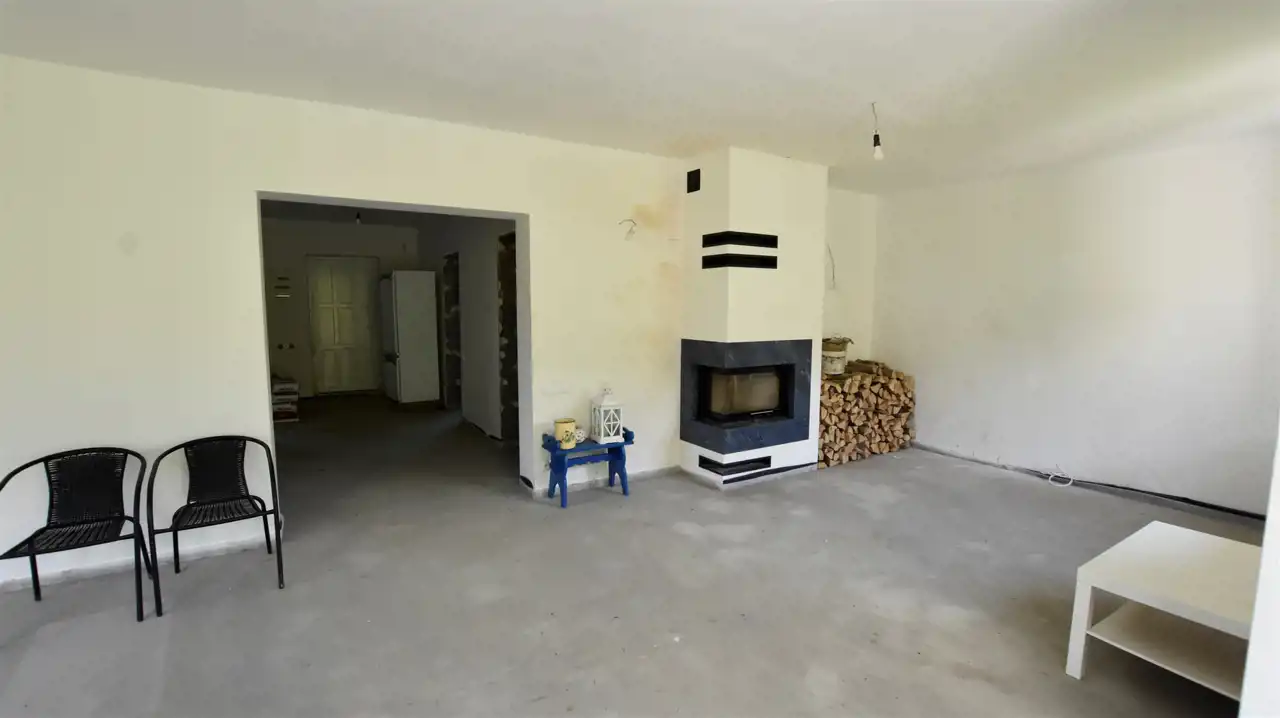 PARTER - salon z kominkiem i wyjściem na taras i część ogrodu, kuchnia, sypialnia, łazienka wc , schowek pod schodami, kotłownia, korytarz