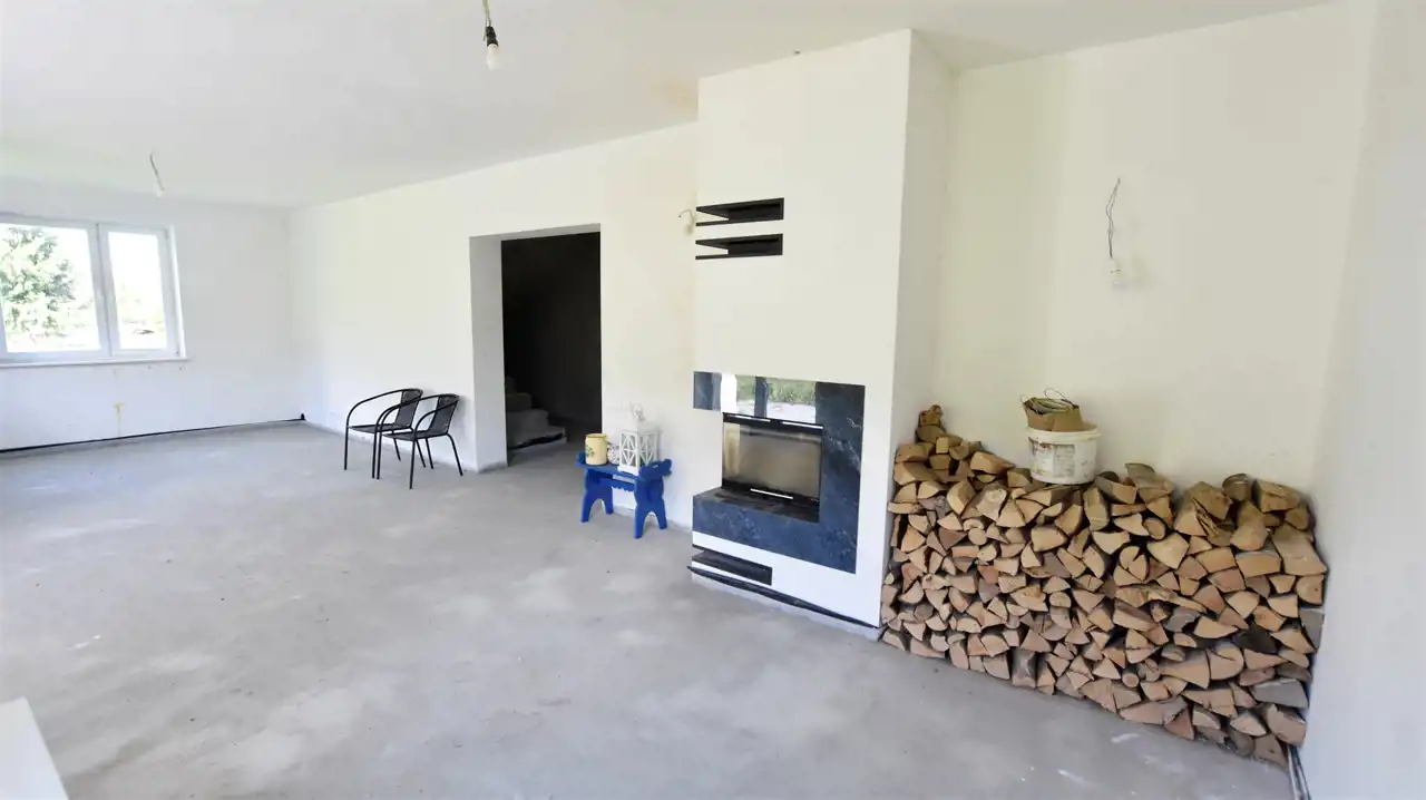 Budynek mieszkalny parterowy, niepodpiwniczony z użytkowym poddaszem i garażem stanowiącym integralną część budynku o pow. użytkowej 138,90 m2, pow. zabudowy 153 m2. Dużym atutem jest działka która stanowi teren znajdujący się za budynkiem, przeznaczyć można go na część rekreacyjną w tym na ogród warzywno- owocowy czy sad. Rok zakończenia budowy 2021 r.