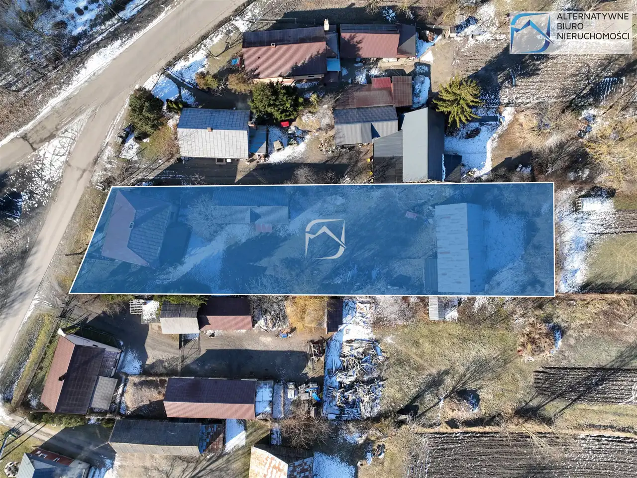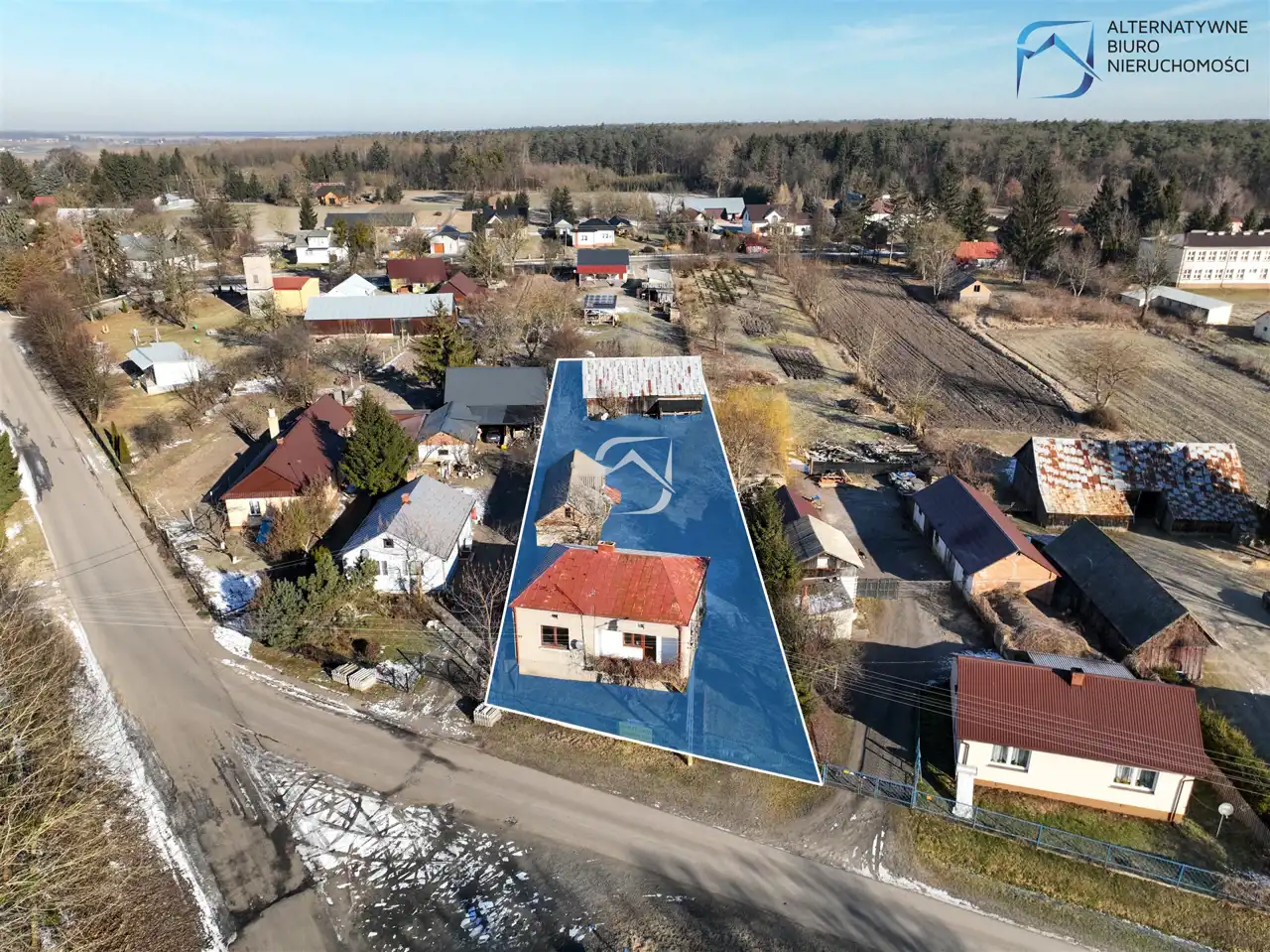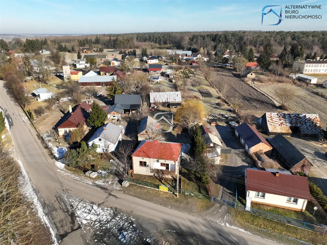 Częściowo zalesiona działka o powierzchni całkowitej 1532 m2 zabudowana jest domem wolnostojącym, garażem i budynkiem gospodarczym. Ulokowanie w pierwszej linii zabudowy od asfaltowej drogi gminnej gwarantuje komfortowy dojazd przez cały rok.
