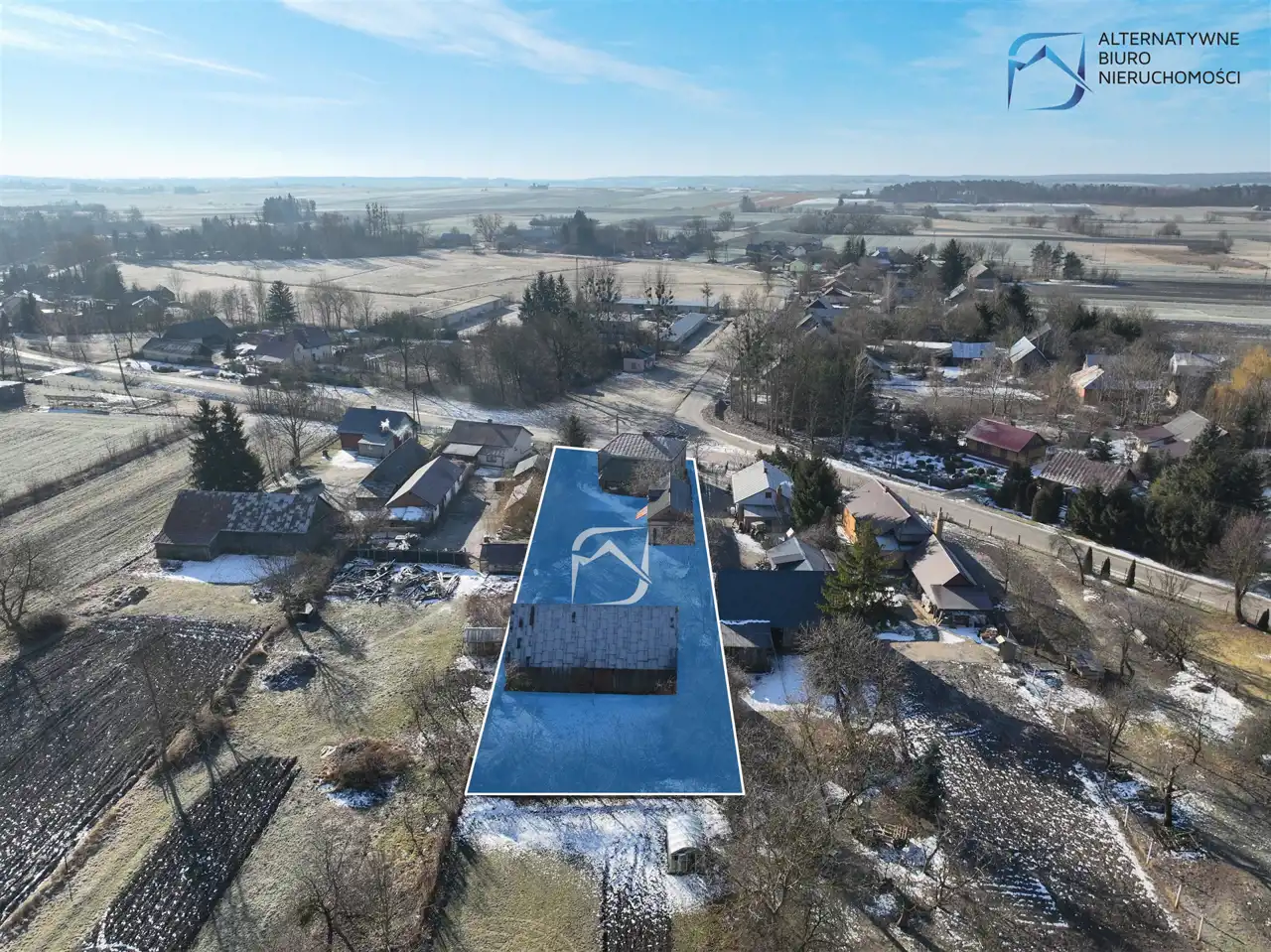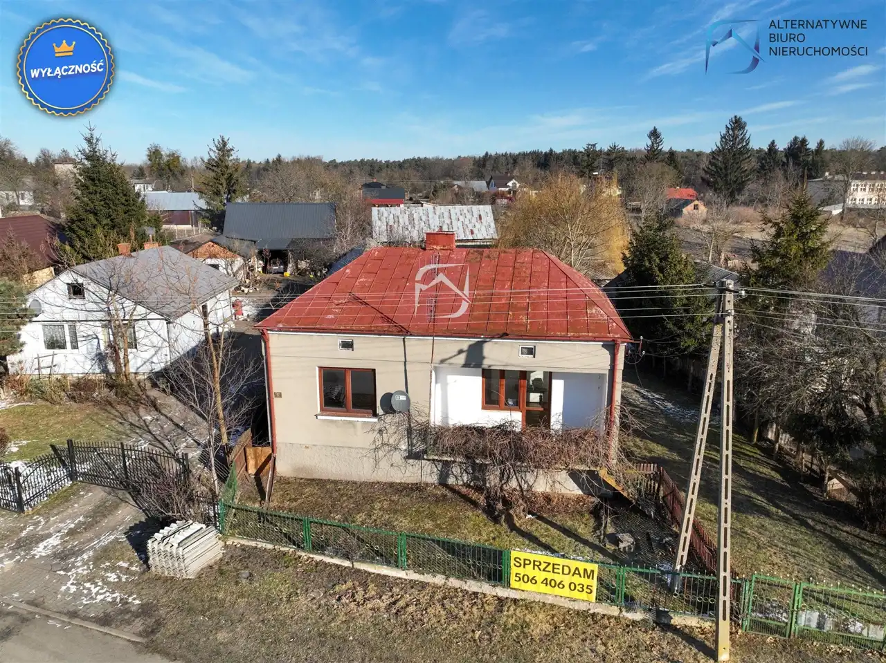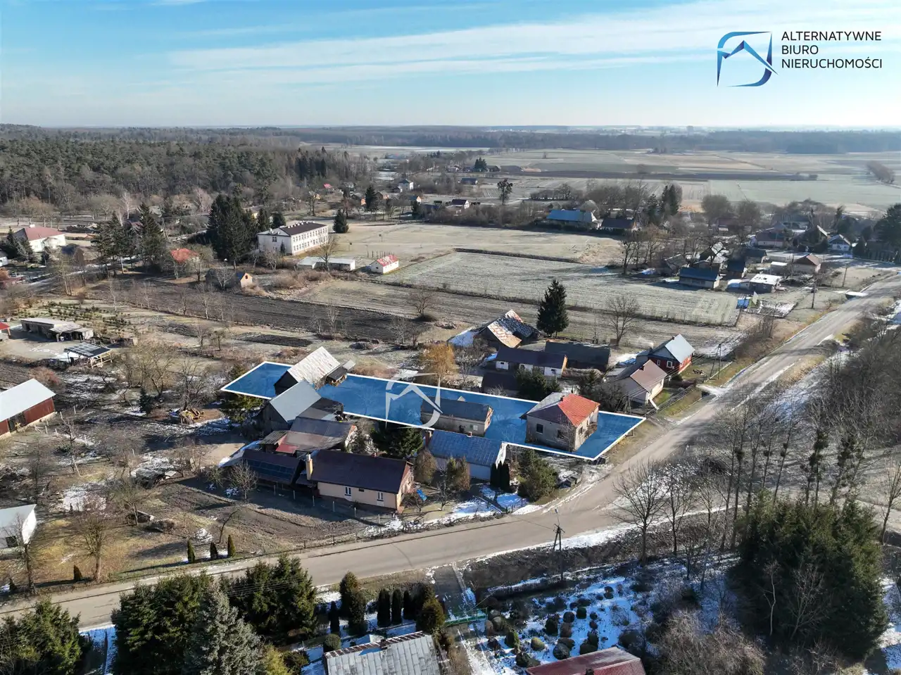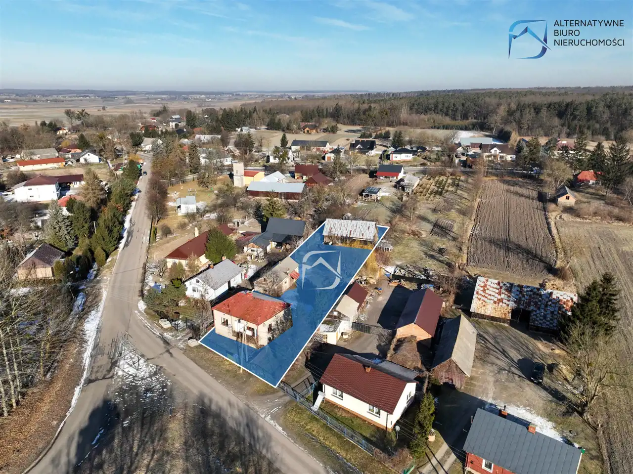 Częściowo zalesiona działka o powierzchni całkowitej 1532 m2 zabudowana jest domem wolnostojącym, garażem i budynkiem gospodarczym. Ulokowanie w pierwszej linii zabudowy od asfaltowej drogi gminnej gwarantuje komfortowy dojazd przez cały rok.