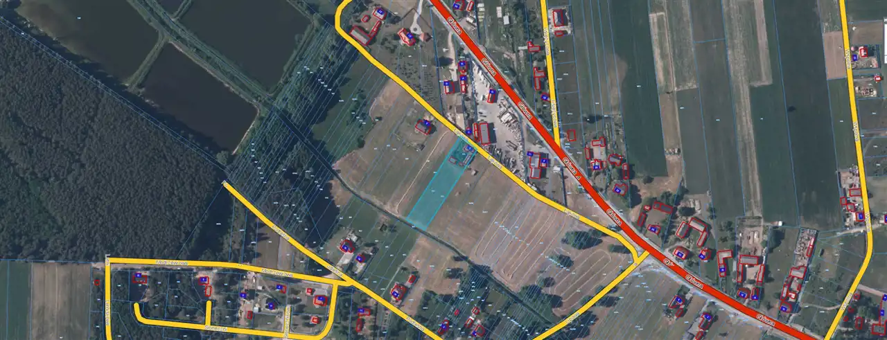 - Działka częściowo zagospodarowana, lekko nachylona, prostokąt