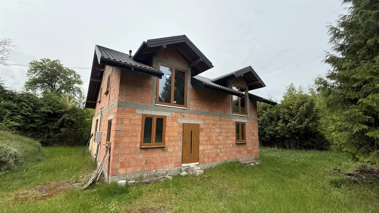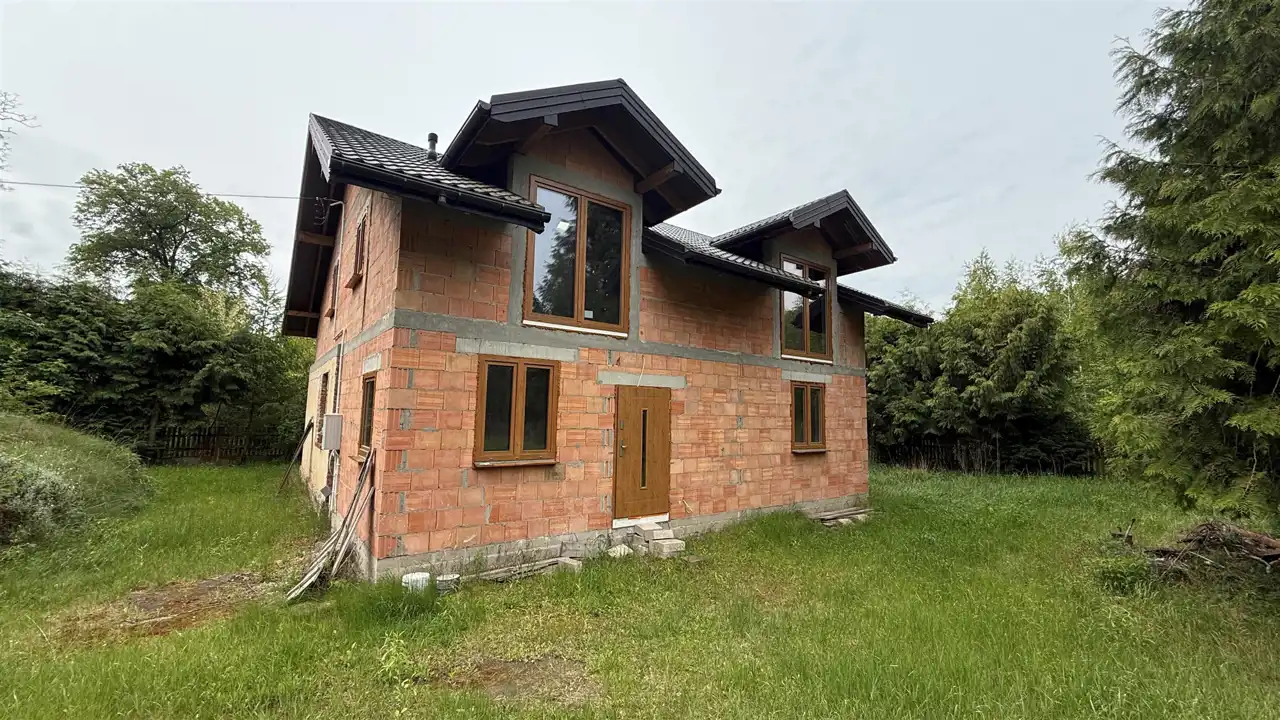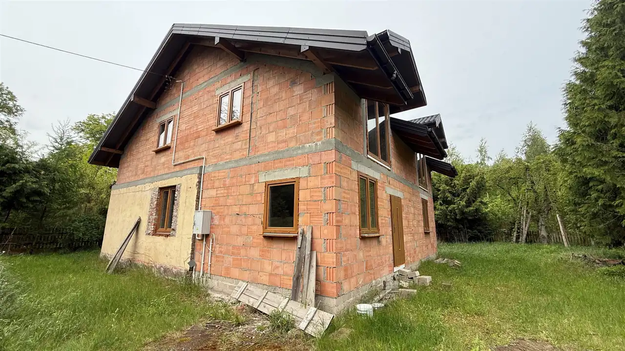 Oferujemy na sprzedaż dom wolnostojący w stanie surowym zamkniętym, położony w malowniczej i spokojnej okolicy, idealnej do życia w zgodzie z naturą. Budynek znajduje się na dużej działce o powierzchni 1607 m², ogrodzonej i otoczonej lasami, co zapewnia wyjątkową prywatność i spokój.