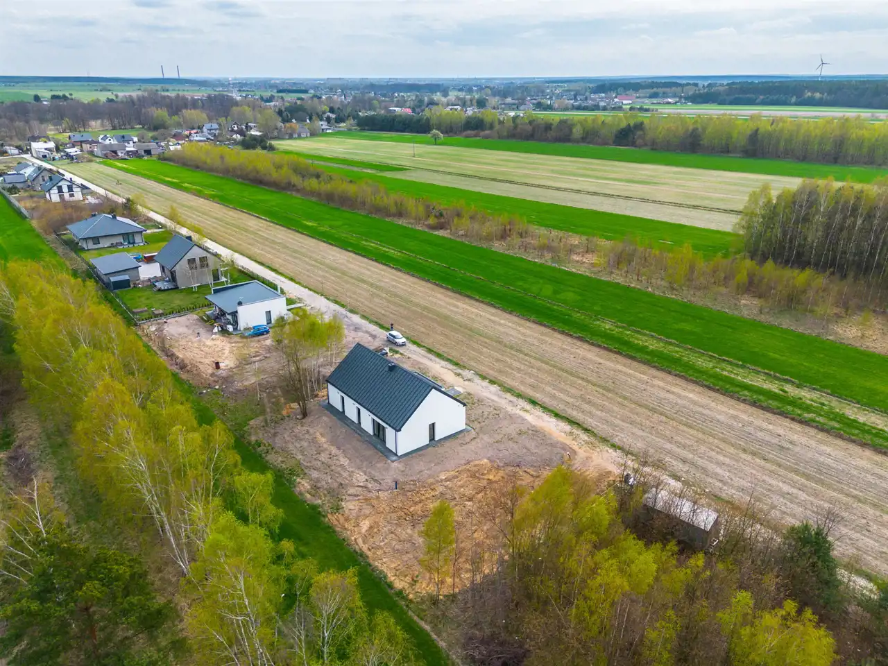 Do Łodzi około 50 km. W najbliższej okolicy znajdują się domy jednorodzinne, co oznacza brak wysokich budynków i otwarty krajobraz.