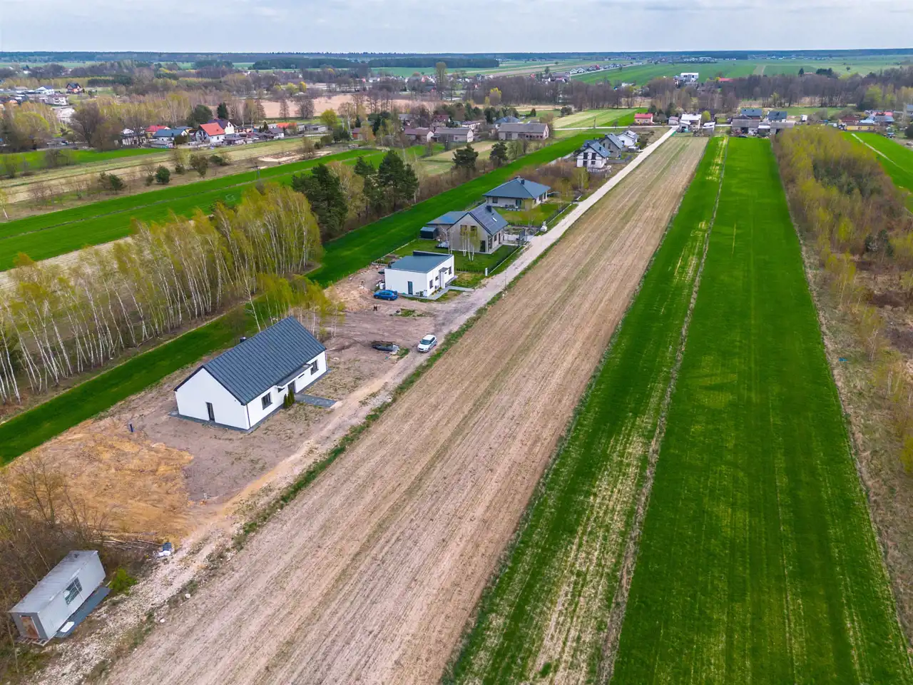 Działka o powierzchni 1021 m² dom położony na końcu drogi wewnętrznej, wśród pól oraz drzew.