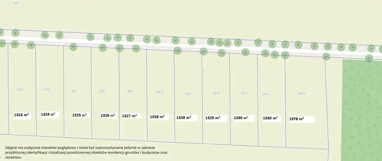 W sprzedaży mamy działki od 1323 m2 do 1978 m2.
