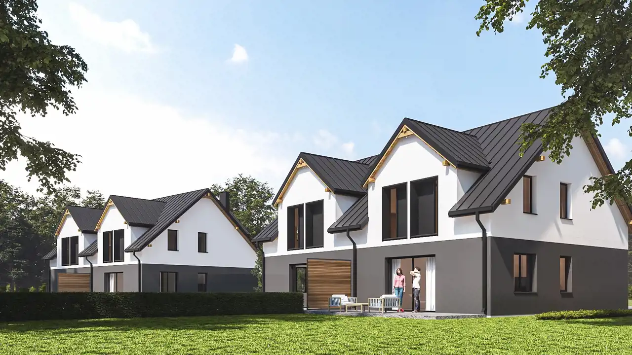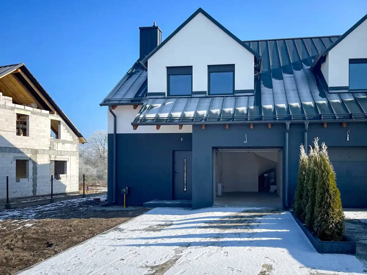Polecamy Państwu budynek jednorodzinny dwulokalowy w Ujściu, niespełna 12 km od Piły, na działkach o powierzchni od 450 do 550 m2. Projekt zakłada budowę dwóch budynków mieszkalnych jednorodzinnych dwulokalowych. Będzie to kameralne osiedle, które pozwoli mieszkańcom odpocząć od zgiełku miasta. Dom jest zbudowany w technologii tradycyjnej, bez podpiwniczenia, z dachem stromym dwuspadowym o kącie pochylenia połaci 40°. Budynek wybudowany z wysokiej jakości materiałów, w nowoczesnym stylu. Inwestycja zlokalizowana została w otulinie pięknych lasów, gdzie można odpocząć po pracy i skorzystać ze spacerów, przejażdżek rowerowych, a w sezonie wybrać się na grzyby.