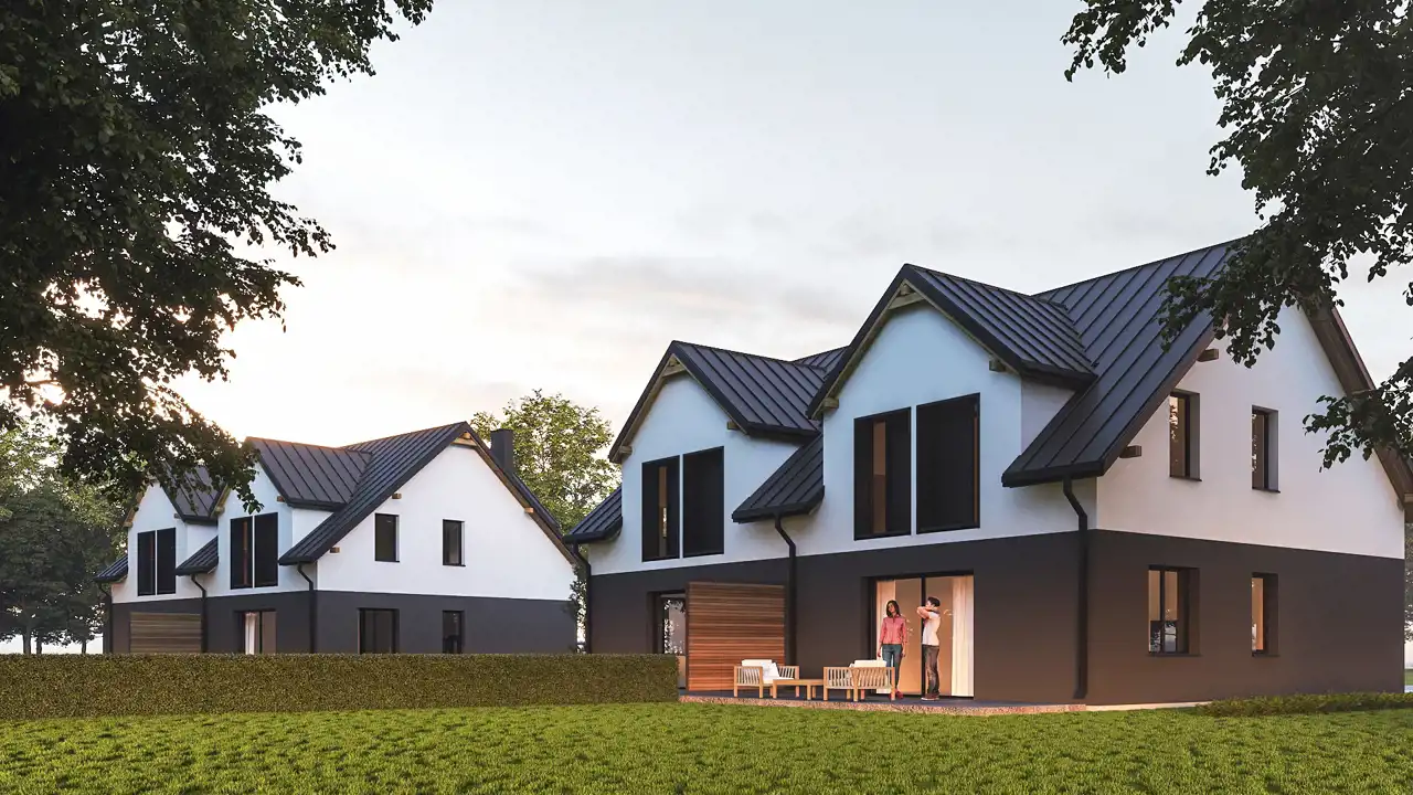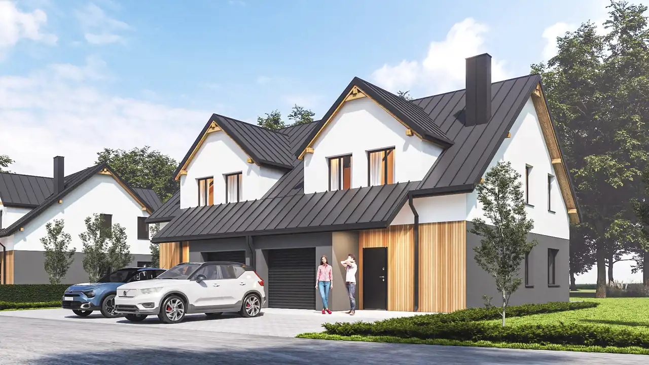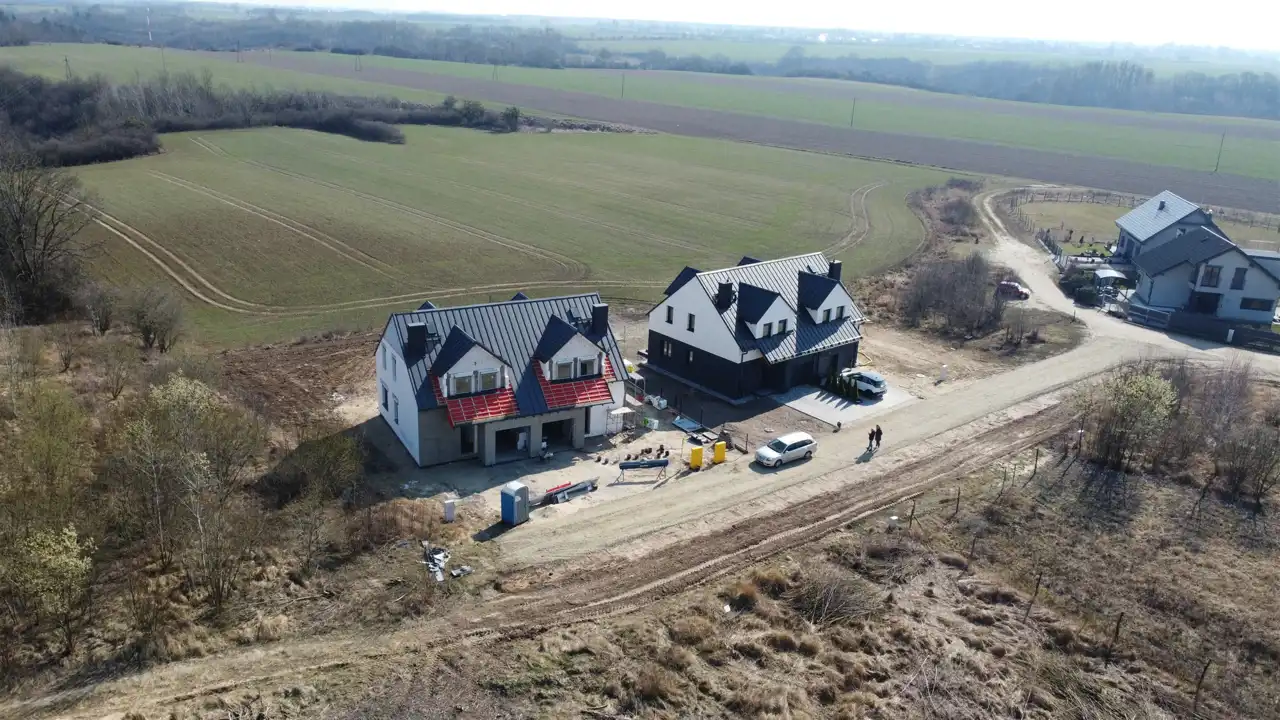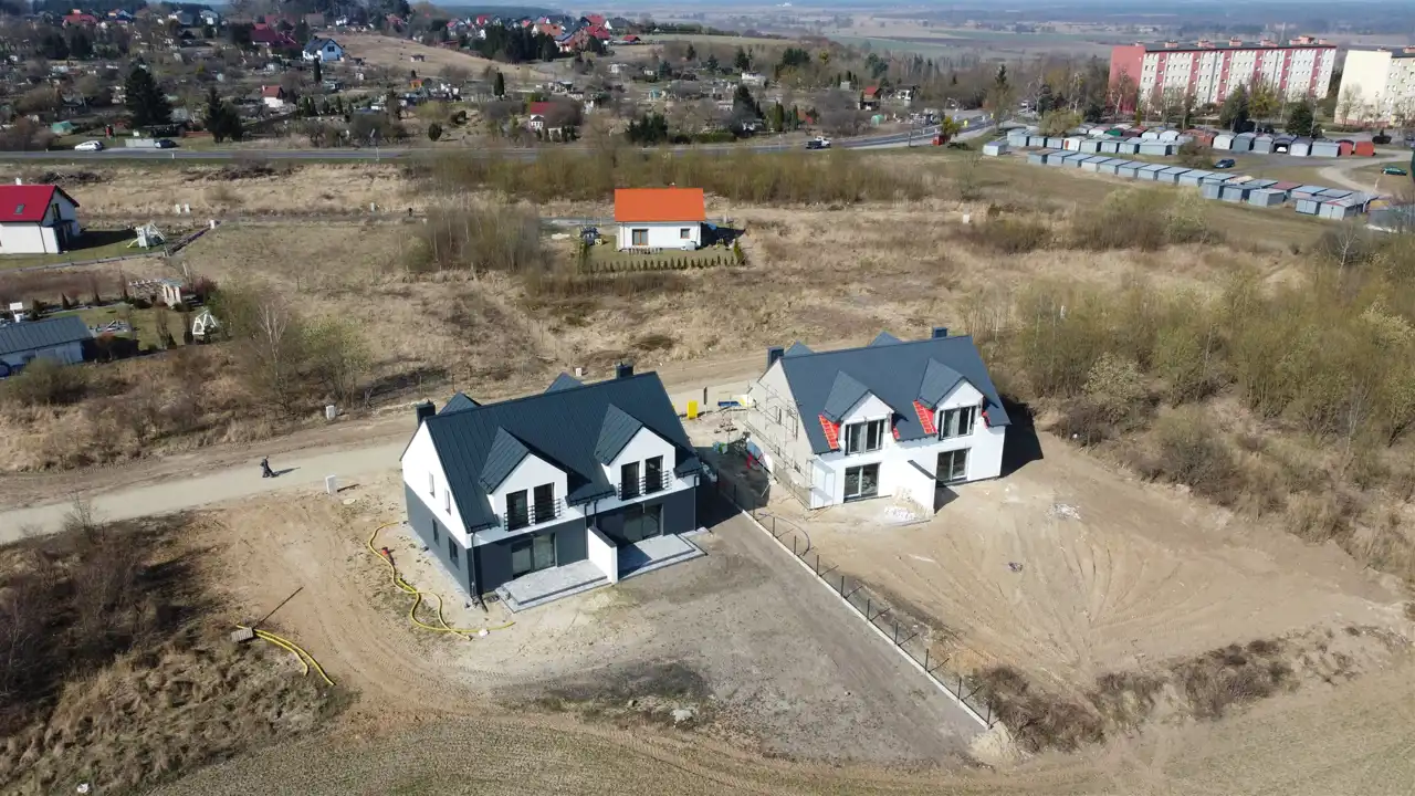 Polecamy Państwu budynek jednorodzinny dwulokalowy w Ujściu, niespełna 12 km od Piły, na działkach o powierzchni od 450 do 550 m2. Projekt zakłada budowę dwóch budynków mieszkalnych jednorodzinnych dwulokalowych. Będzie to kameralne osiedle, które pozwoli mieszkańcom odpocząć od zgiełku miasta. Dom jest zbudowany w technologii tradycyjnej, bez podpiwniczenia, z dachem stromym dwuspadowym o kącie pochylenia połaci 40°. Budynek wybudowany z wysokiej jakości materiałów, w nowoczesnym stylu. Inwestycja zlokalizowana została w otulinie pięknych lasów, gdzie można odpocząć po pracy i skorzystać ze spacerów, przejażdżek rowerowych, a w sezonie wybrać się na grzyby.