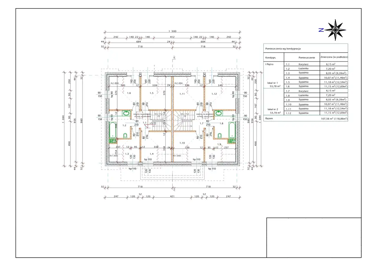 - piętro (mierzone po podłodze) : sypialnia (12,69 m2), sypialnia (12,54 m2), sypialnia(11,46 m2), sypialnia(11,86 m2), łazienka (7,2m2), korytarz (6,15m2)..