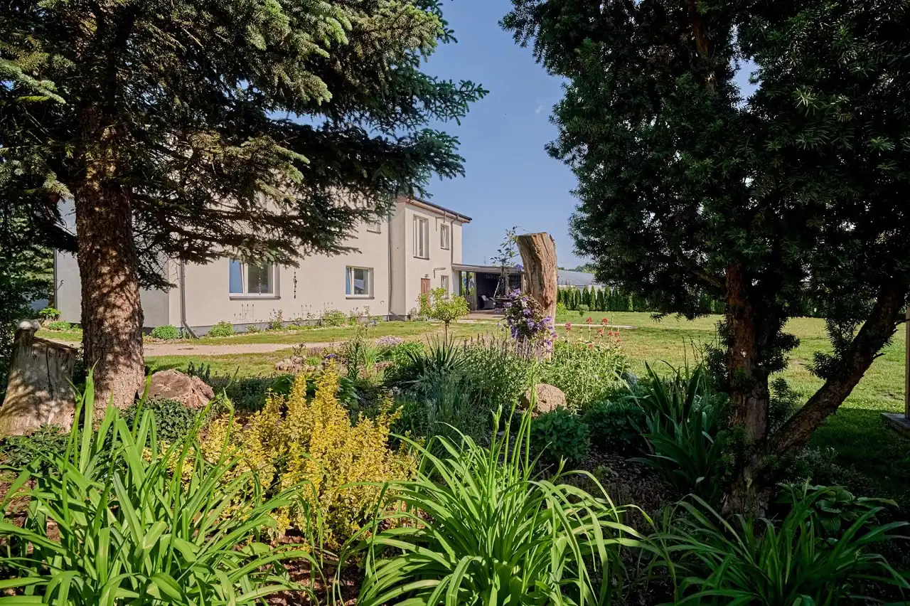 - Pięknie zagospodarowana działka: dojrzałe nasadzenia drzew i krzewów, żywopłoty z tui, orzech dający coroczne plony