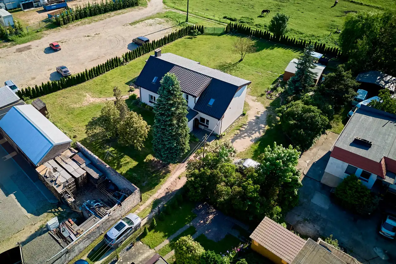 - Dwa niezależne wjazdy na posesję – możliwość fizycznego wydzielenia dwóch części działki