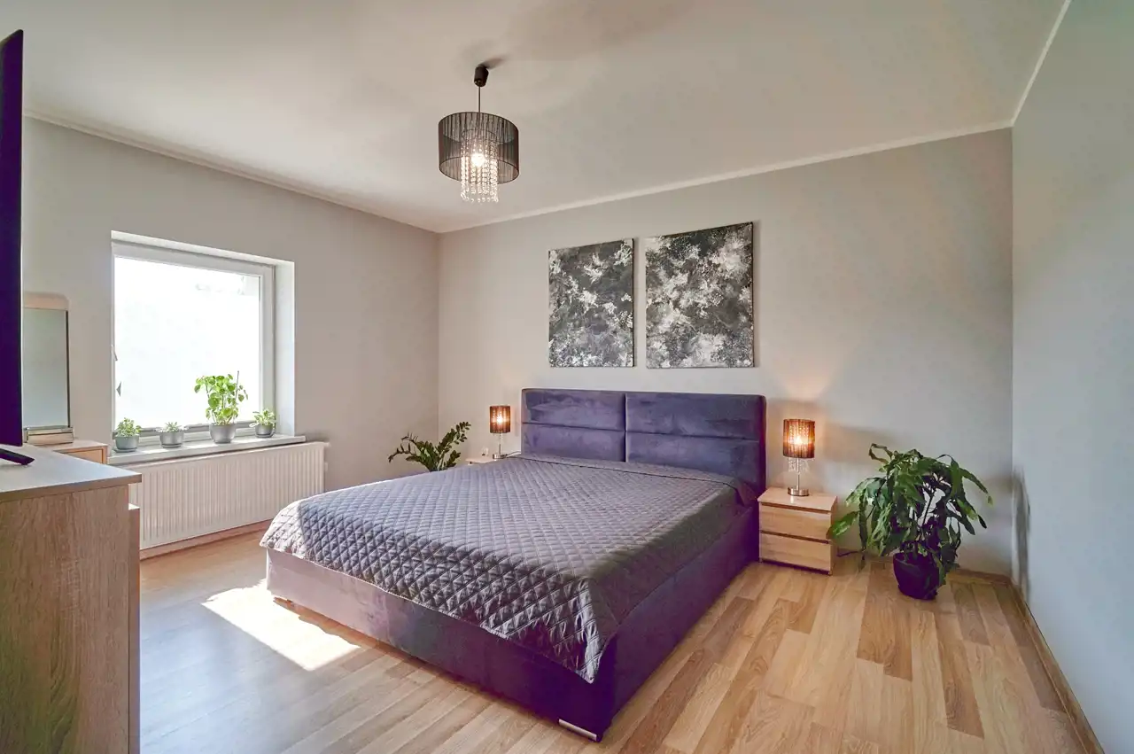 - Sypialnia – 17,5 m² z garderobą – 4,5 m²