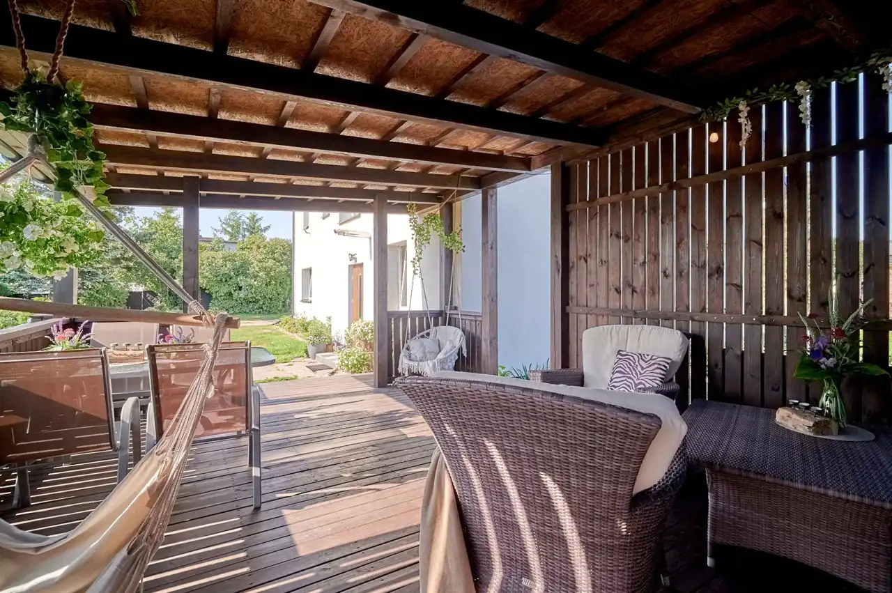 - Zadaszony taras – idealne miejsce na Rodzinne spotkania!
