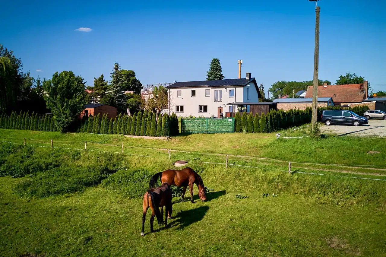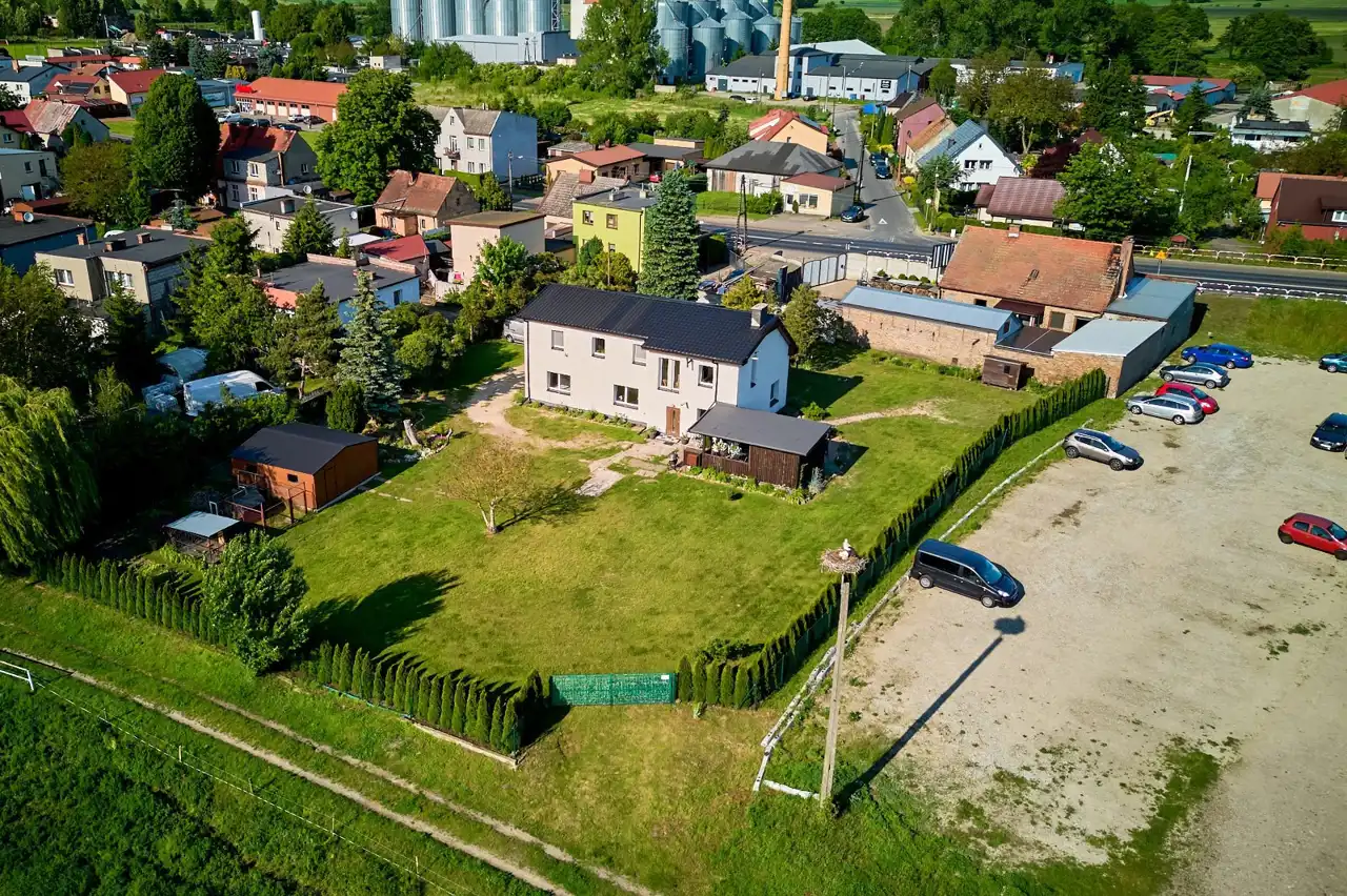 - Dwa niezależne wjazdy na posesję – możliwość fizycznego wydzielenia dwóch części działki