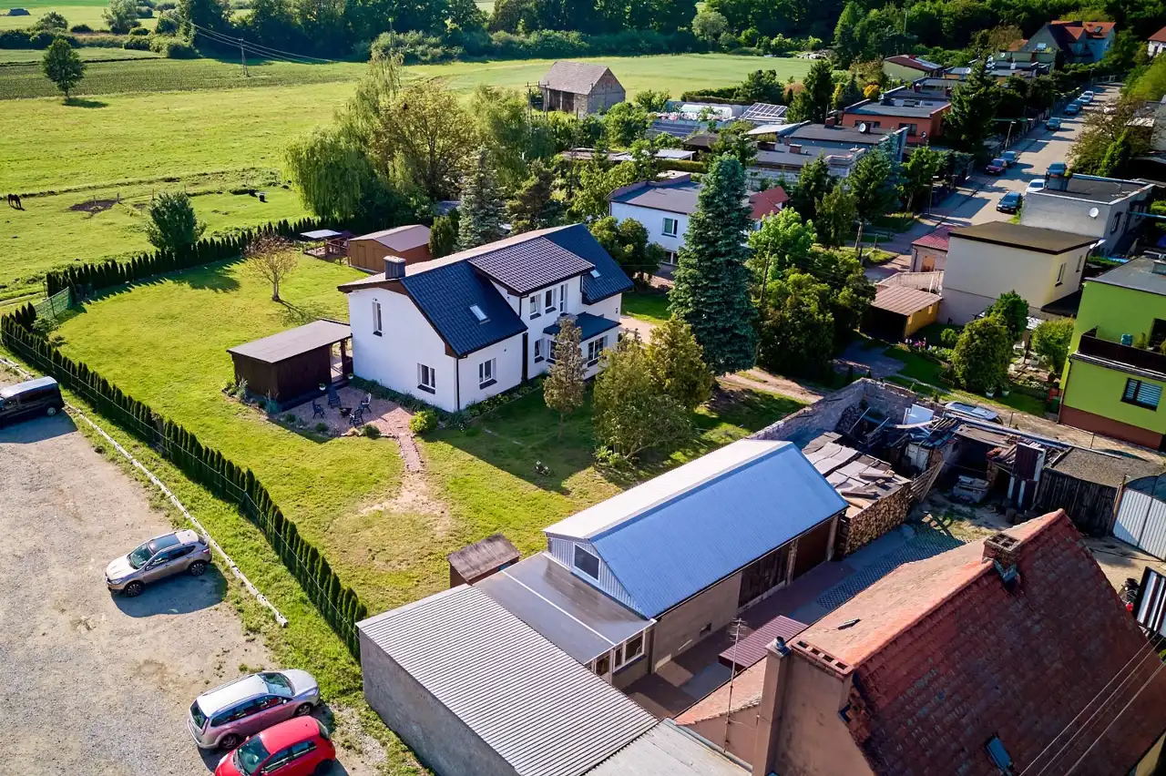 - Dwa niezależne wjazdy na posesję – możliwość fizycznego wydzielenia dwóch części działki