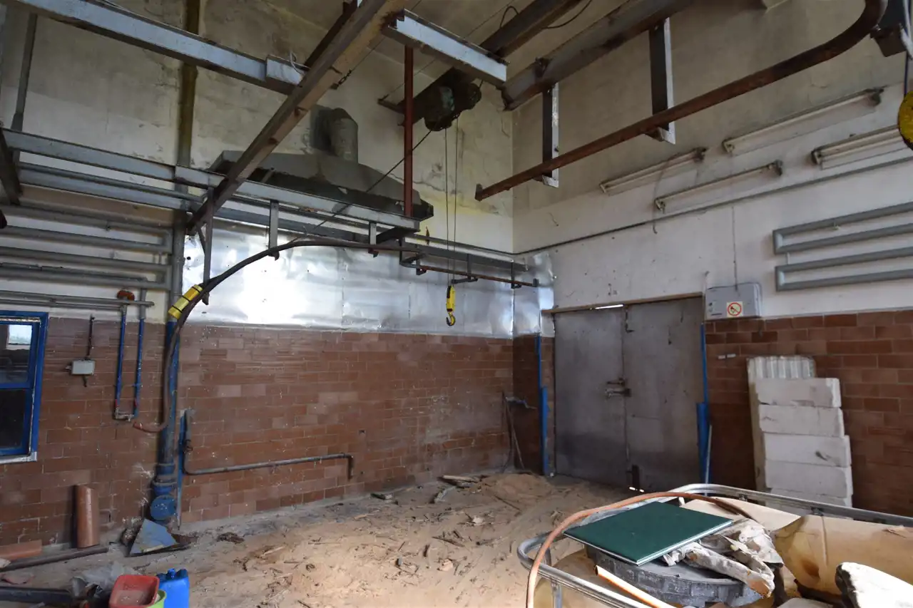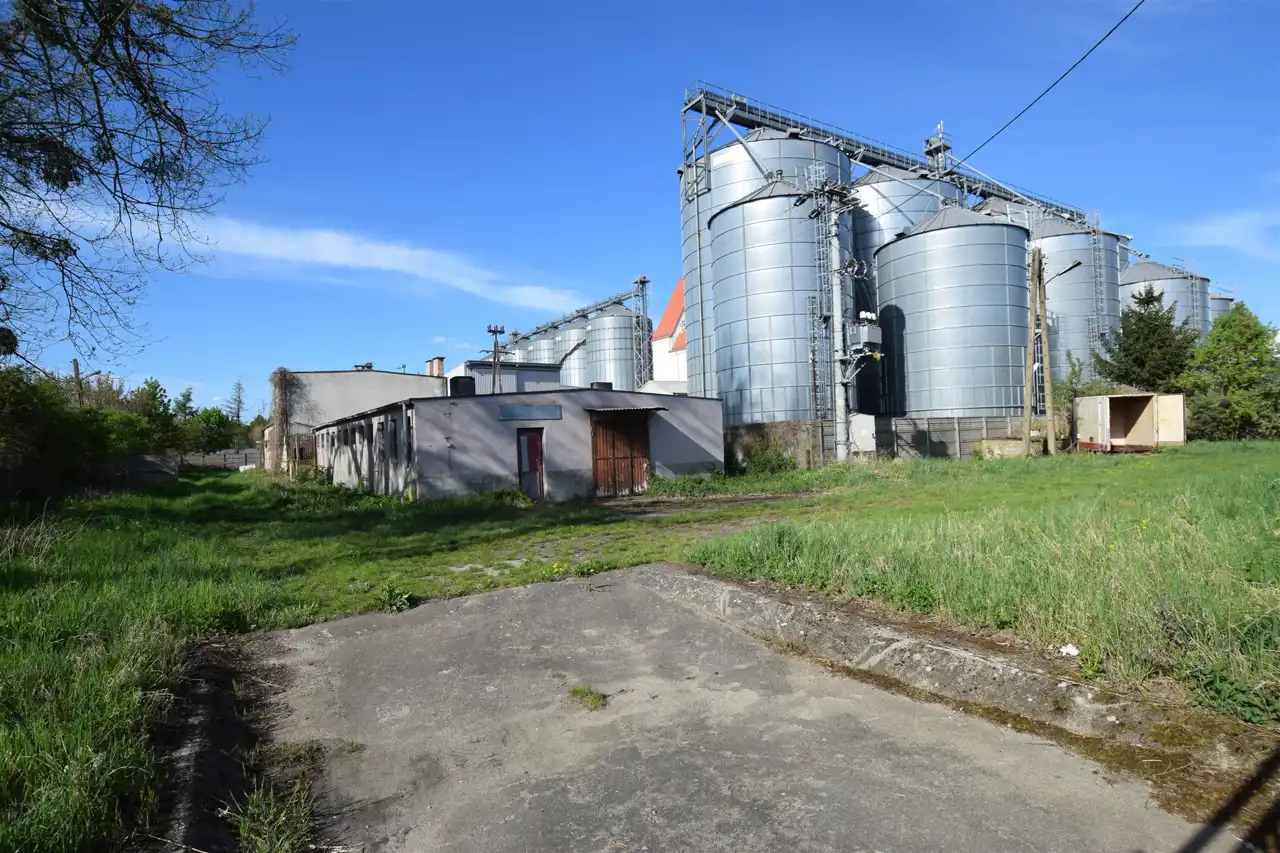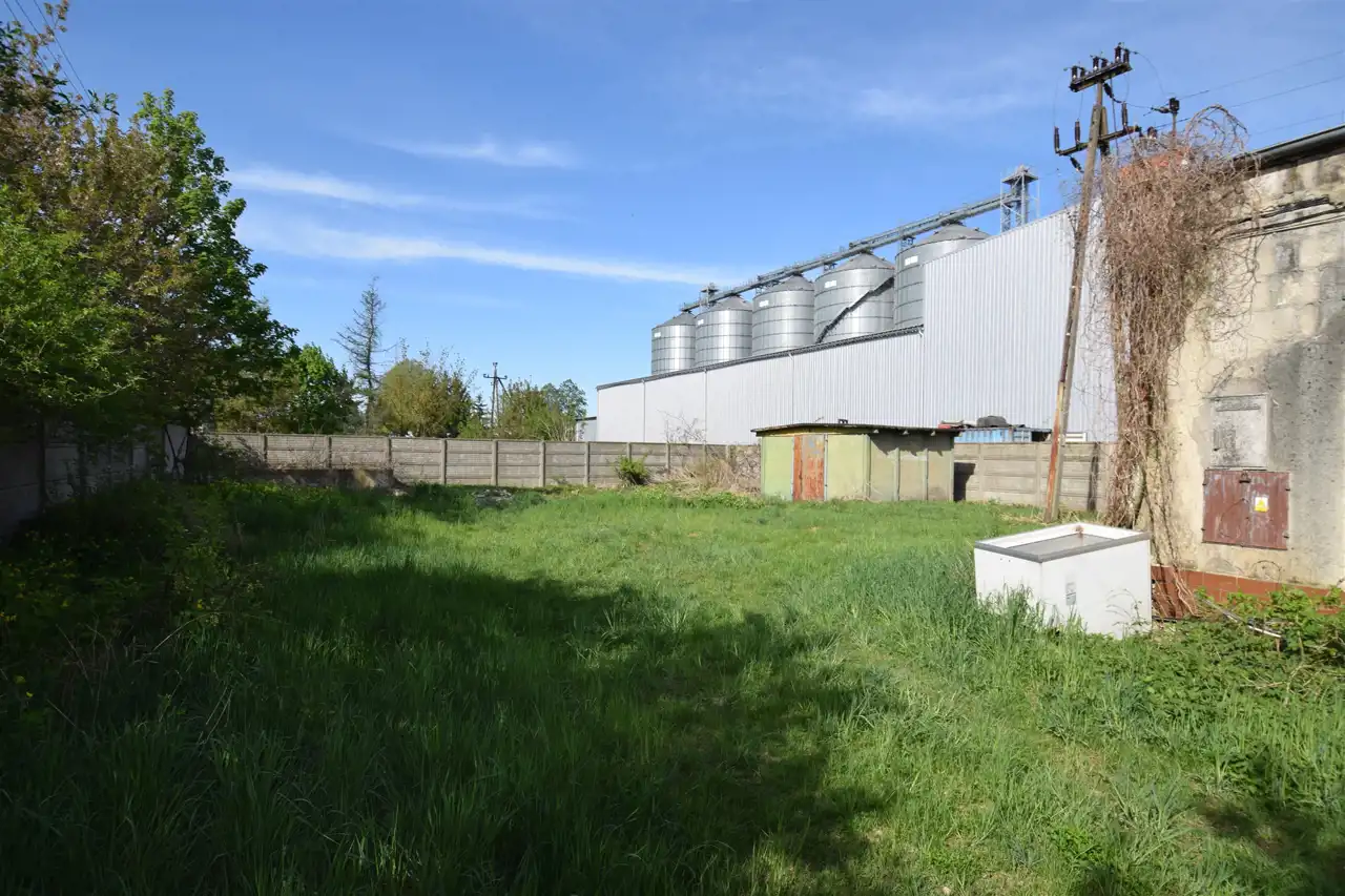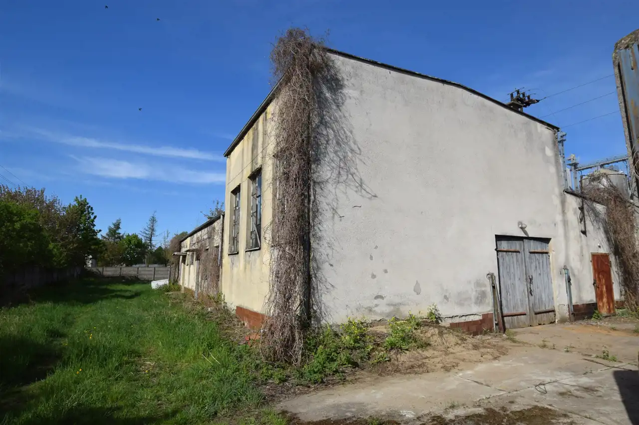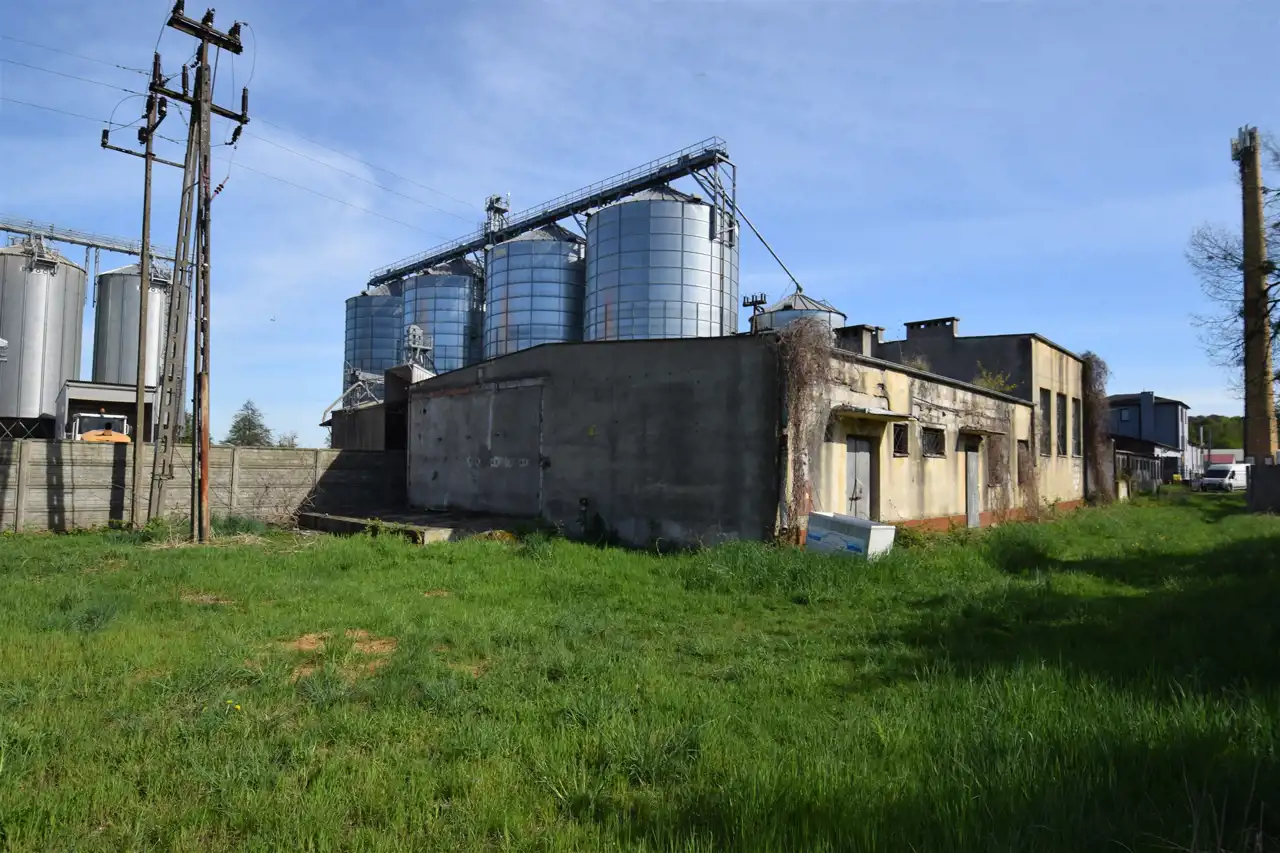 Ofertę stanowią trzy działki o łącznej powierzchni 2555m2. Działki przylegają do siebie tworząc funkcjonalną całość. Posiadają dostęp do drogi publicznej. Jedna z działek zabudowana dwoma budynkami o charakterze przemysłowym. Budynki wymagają modernizacji. Budynek główny - parterowy, niepodpiwniczony o konstrukcji murowanej ze stropodachem płaskim dwuspadowym. Wybudowany w roku 1991, pow. użytkowa 229,31 m2, pow. zabudowy 285,74 m2, kubatura 1455,79 m3. Budynek podzielony na kilka pomieszczeń.