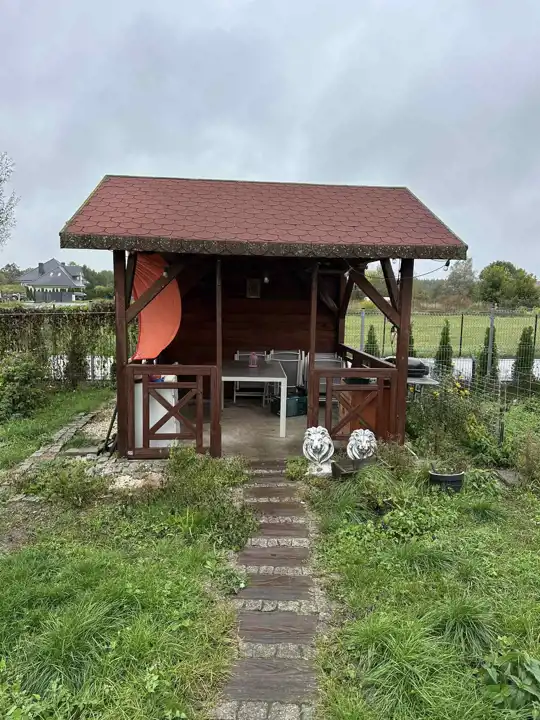 Dom jest w dobrym stanie technicznym, gotowy do wprowadzenia od zaraz. W jego wnętrzu znajduje się przestronny salon z częścią jadalną, sypialnia, jasna kuchnia oraz łazienka z toaletą. Układ pomieszczeń został zaprojektowany z myślą o wygodzie codziennego użytkowania.