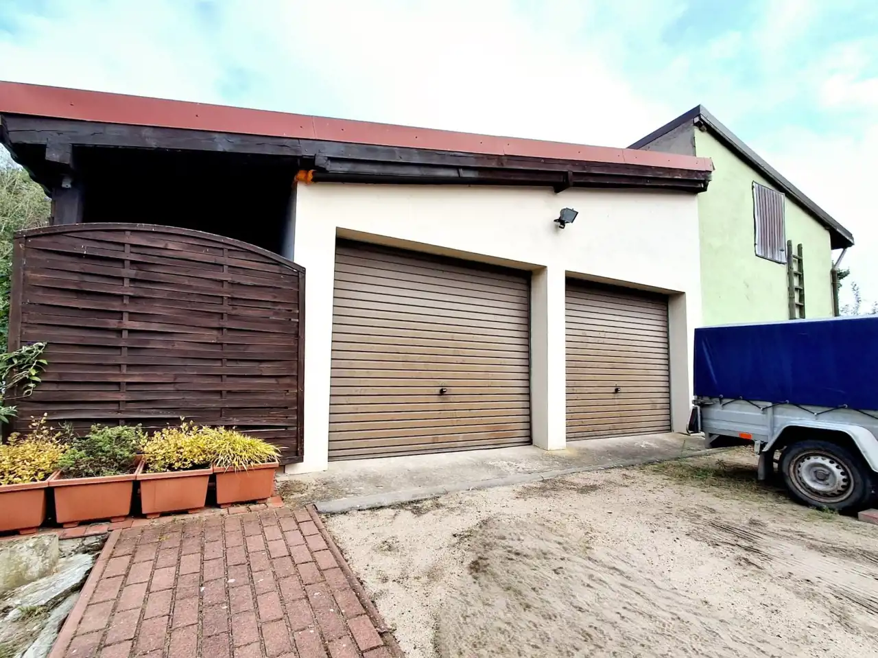 Na działce znajduje się murowany garaż dwustanowiskowy (39 m² pow. użytkowej).