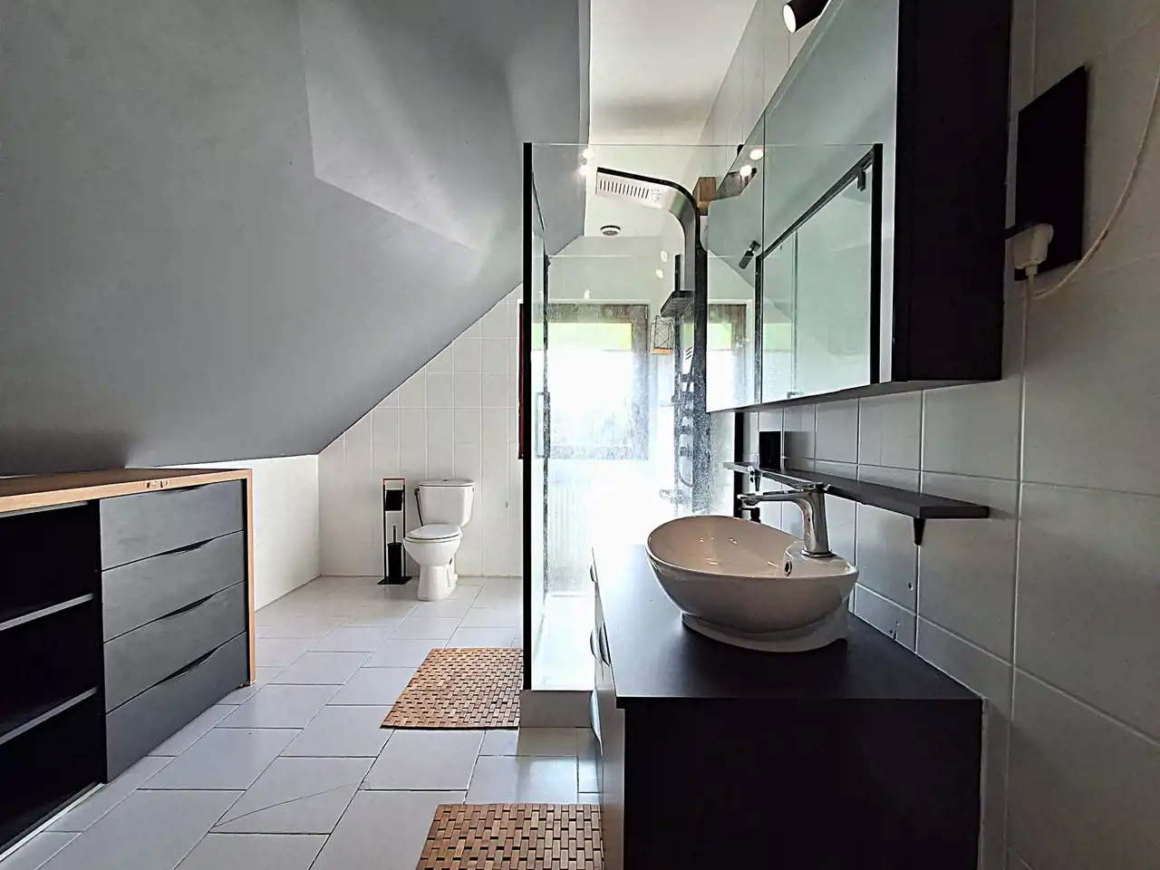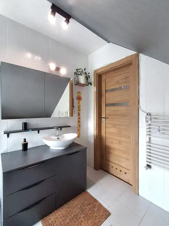 łazienka (ok. 10 m² pow. przypodłogowej), wyposażona w kabinę prysznicową oraz wc,